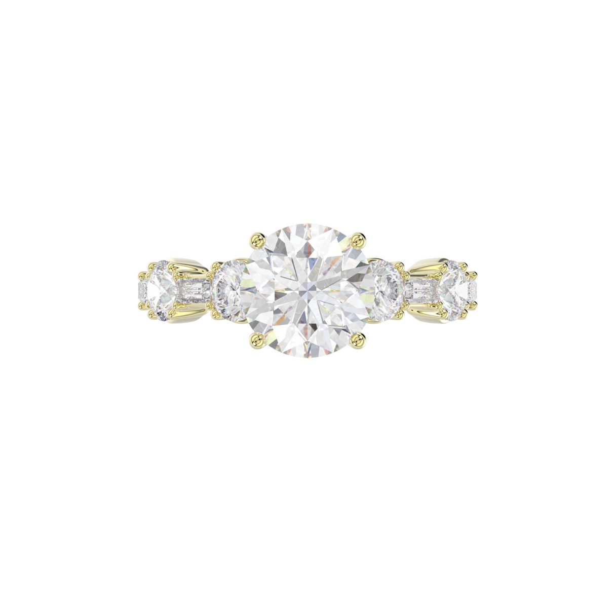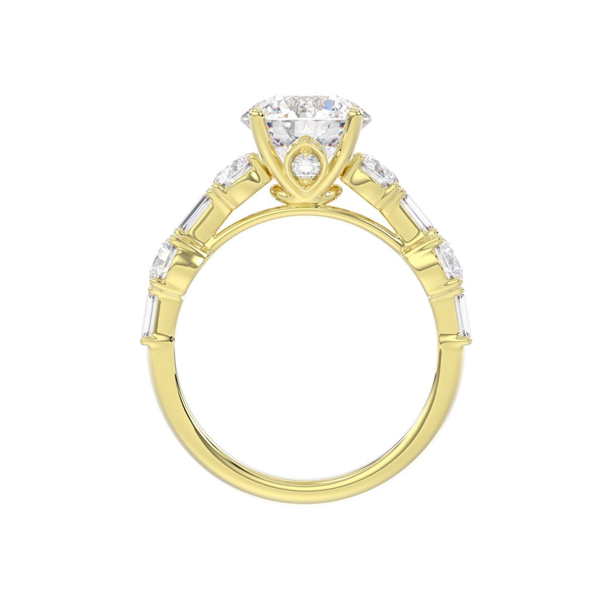 LADIES RING 3CT ROUND/BAGUETTE DIAMOND 14K YELLOW GOLD (CENTER STONE ROUND DIAMOND 2.00CT)
