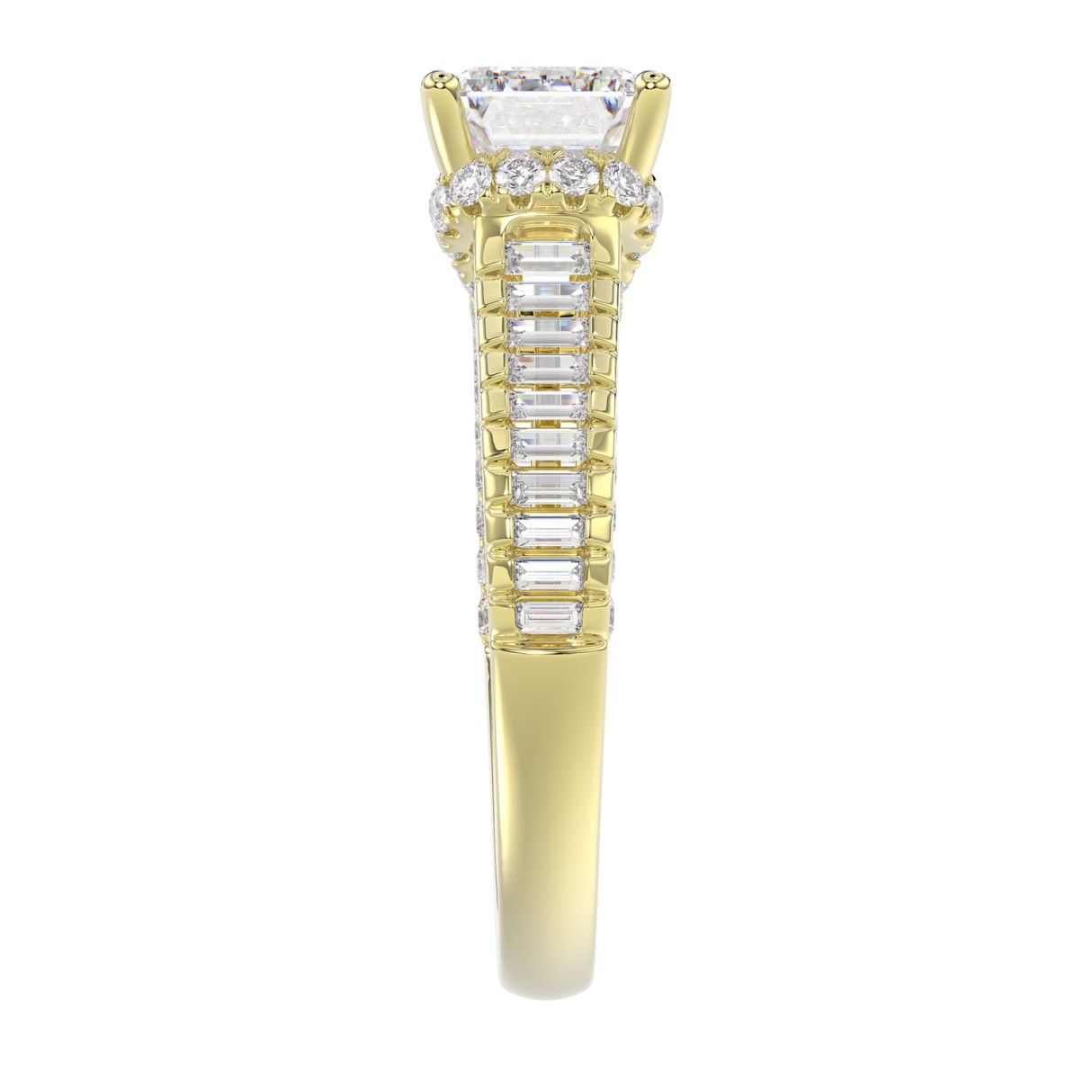 LADIES RING 3CT ROUND/EMERALD/BAGUETTE DIAMOND 14K YELLOW GOLD (CENTER STONE EMERALD DIAMOND 2.00CT)