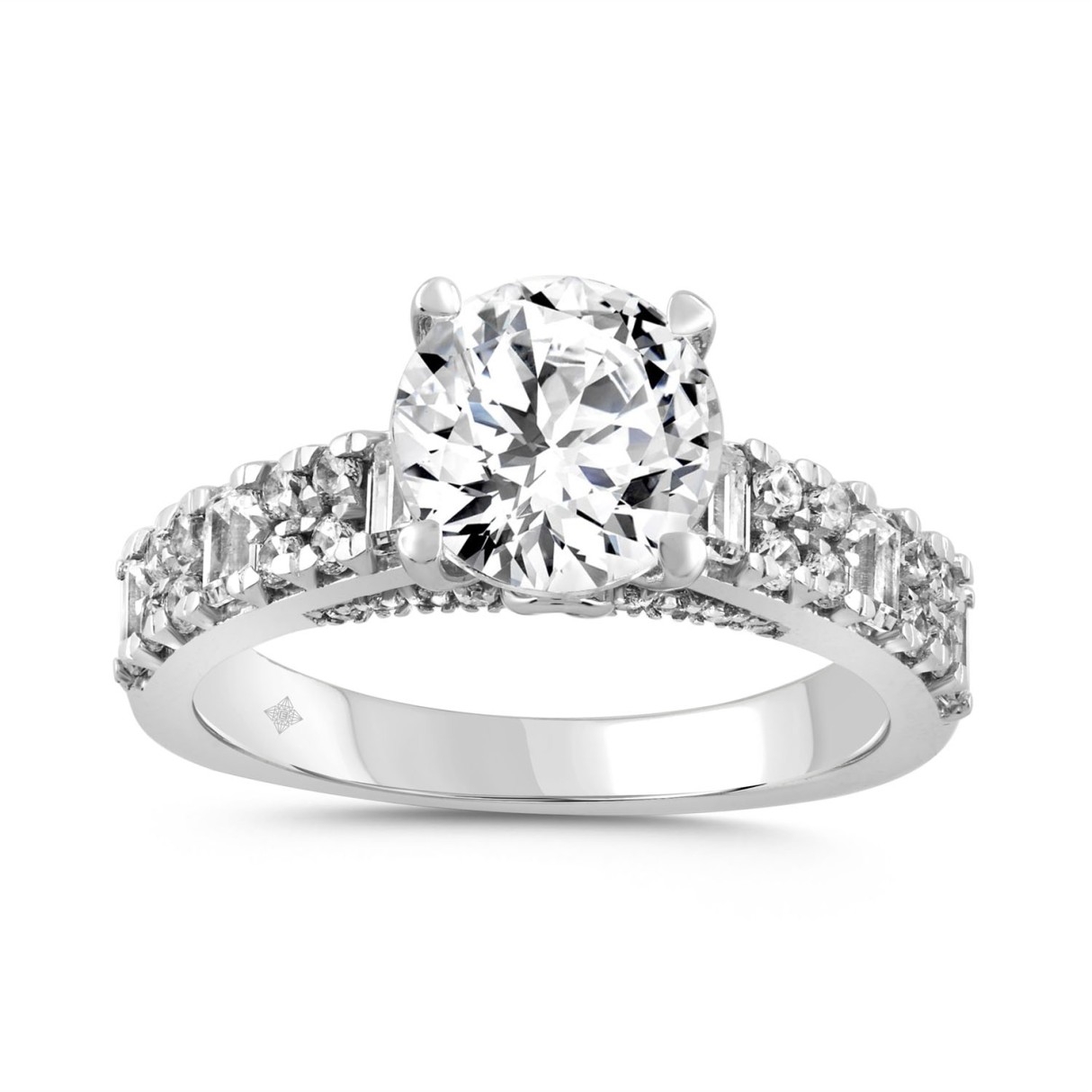 LADIES RING 3CT ROUND/EMERALD DIAMOND 14K WHITE GOLD (CENTER STONE ROUND DIAMOND 2.00CT)