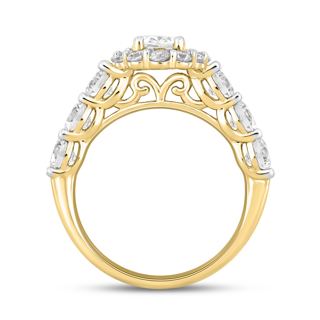 LADIES RING 3CT ROUND/OVAL DIAMOND 14K YELLOW GOLD (CENTER STONE OVAL DIAMOND 1CT )