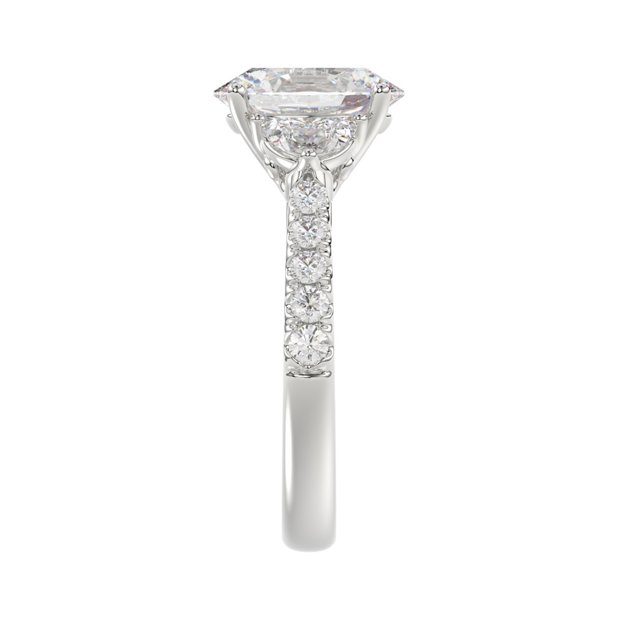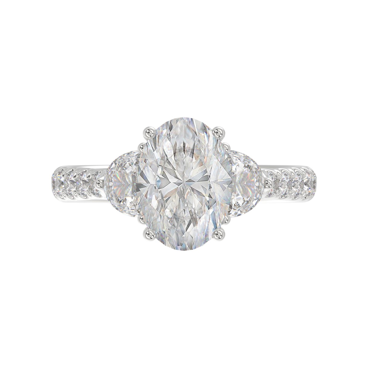 LADIES RING 3CT ROUND/OVAL/HALF MOON DIAMOND 14K WHITE GOLD (CENTER STONE OVAL DIAMOND 2CT )