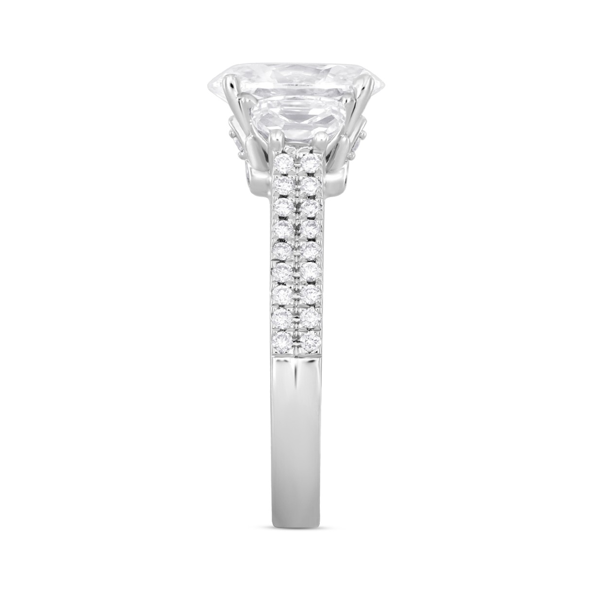 LADIES RING 3CT ROUND/OVAL/PEAR DIAMOND 14K WHITE GOLD (CENTER STONE OVAL DIAMOND 2CT )