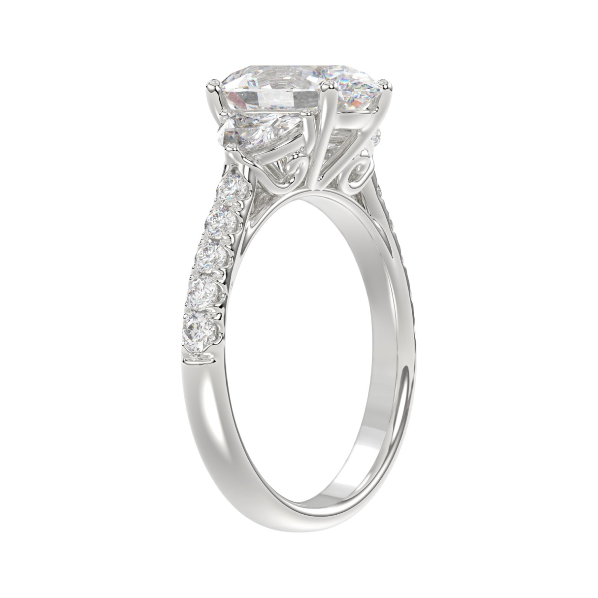 LADIES RING 3CT ROUND/OVAL/BAGUETTE/EMERALD DIAMOND 14K WHITE GOLD (CENTER STONE OVAL DIAMOND 2.00CT)