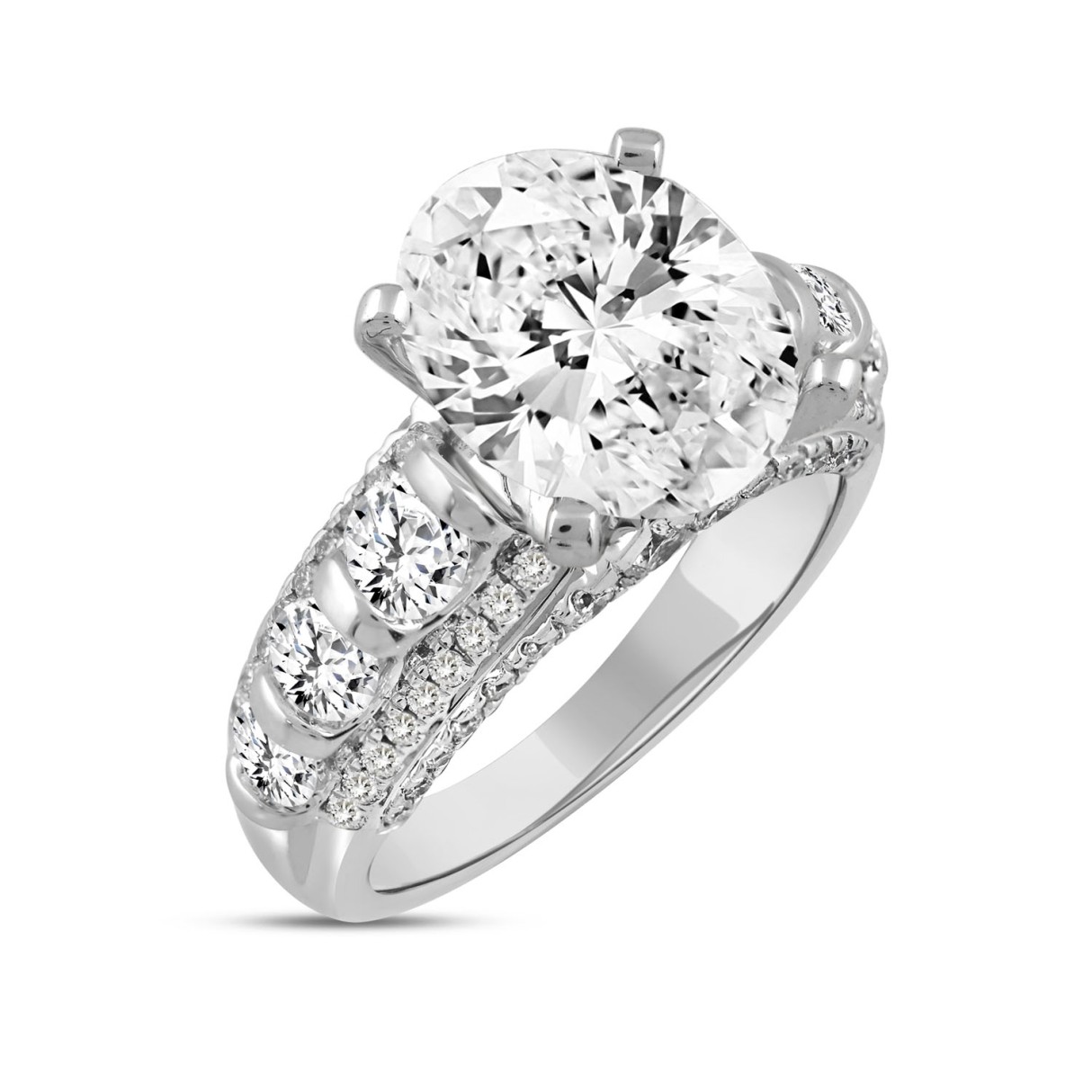 LADIES RING 6 1/2CT ROUND/OVAL DIAMOND 14K WHITE GOLD (CENTER STONE OVAL DIAMOND 5CT )