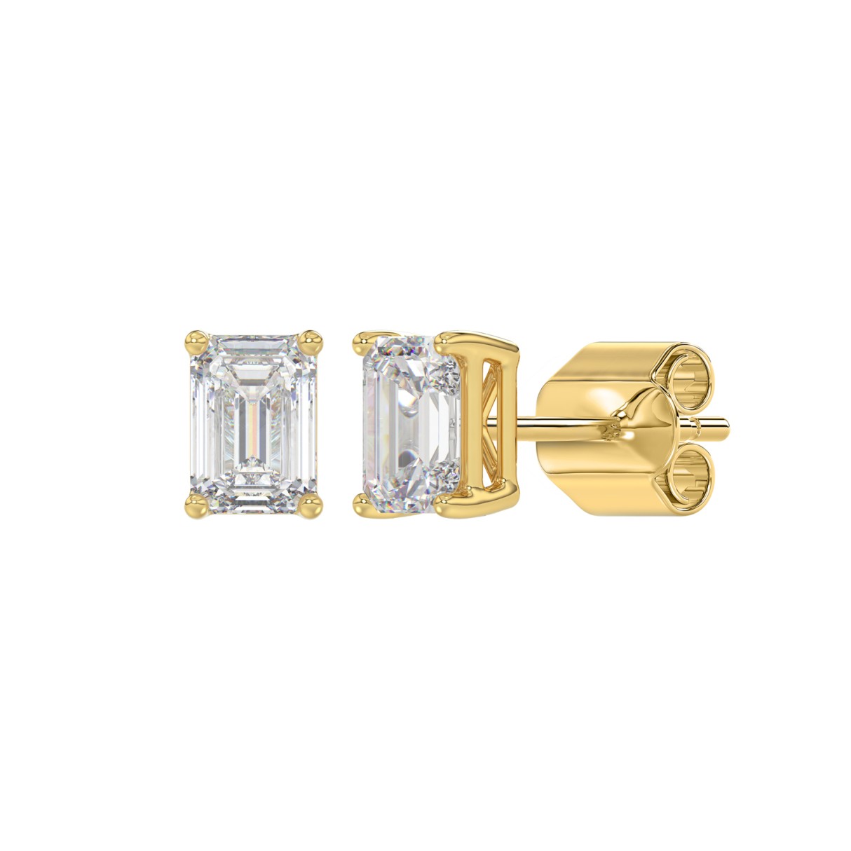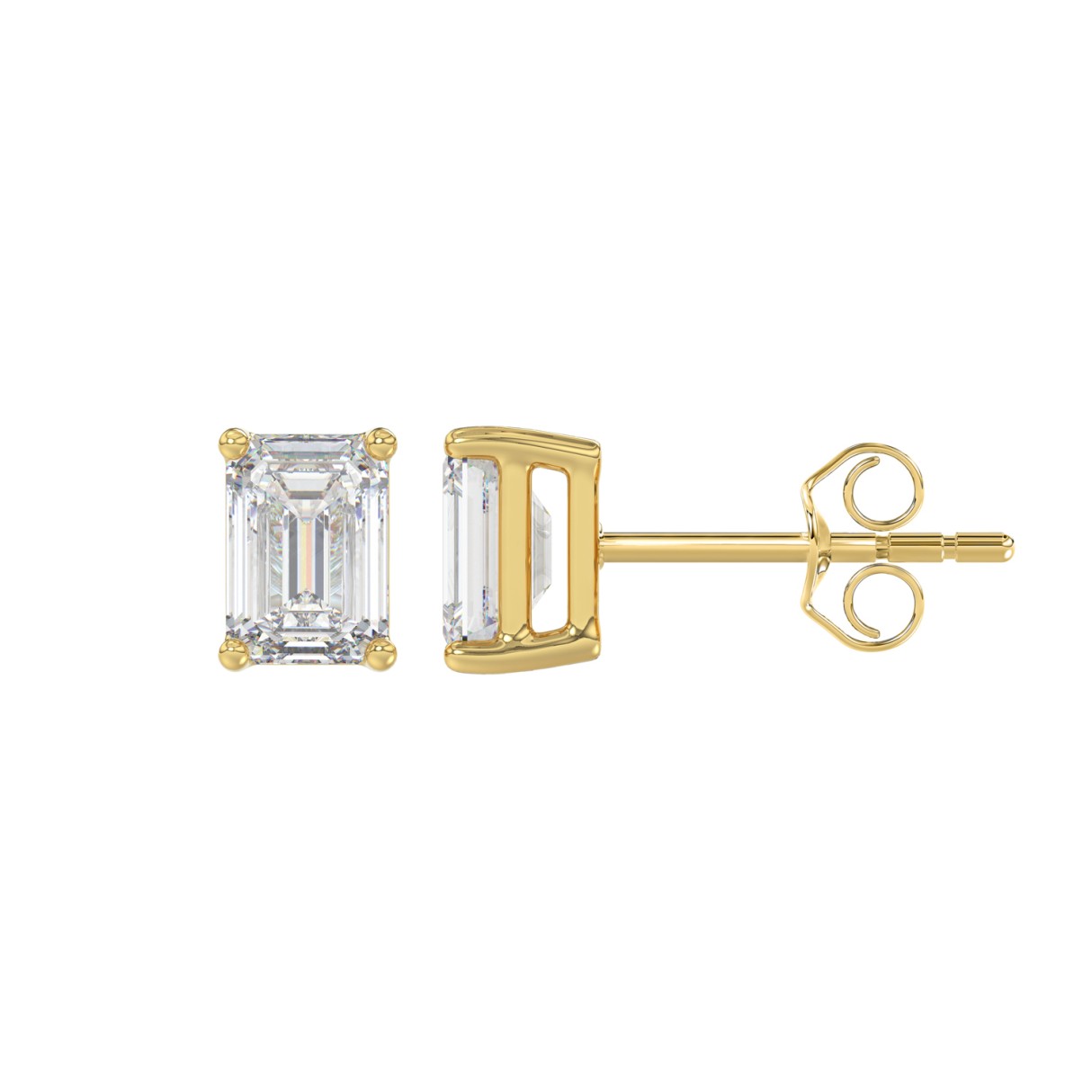 LADIES SOLITAIRE EARRINGS 1 1/2CT EMERALD DIAMOND 14K YELLOW GOLD