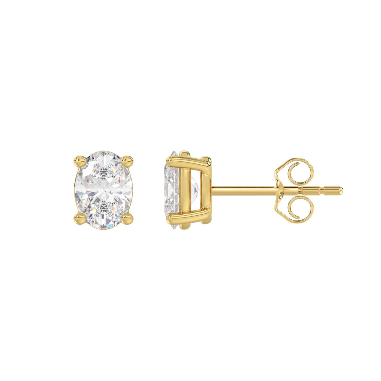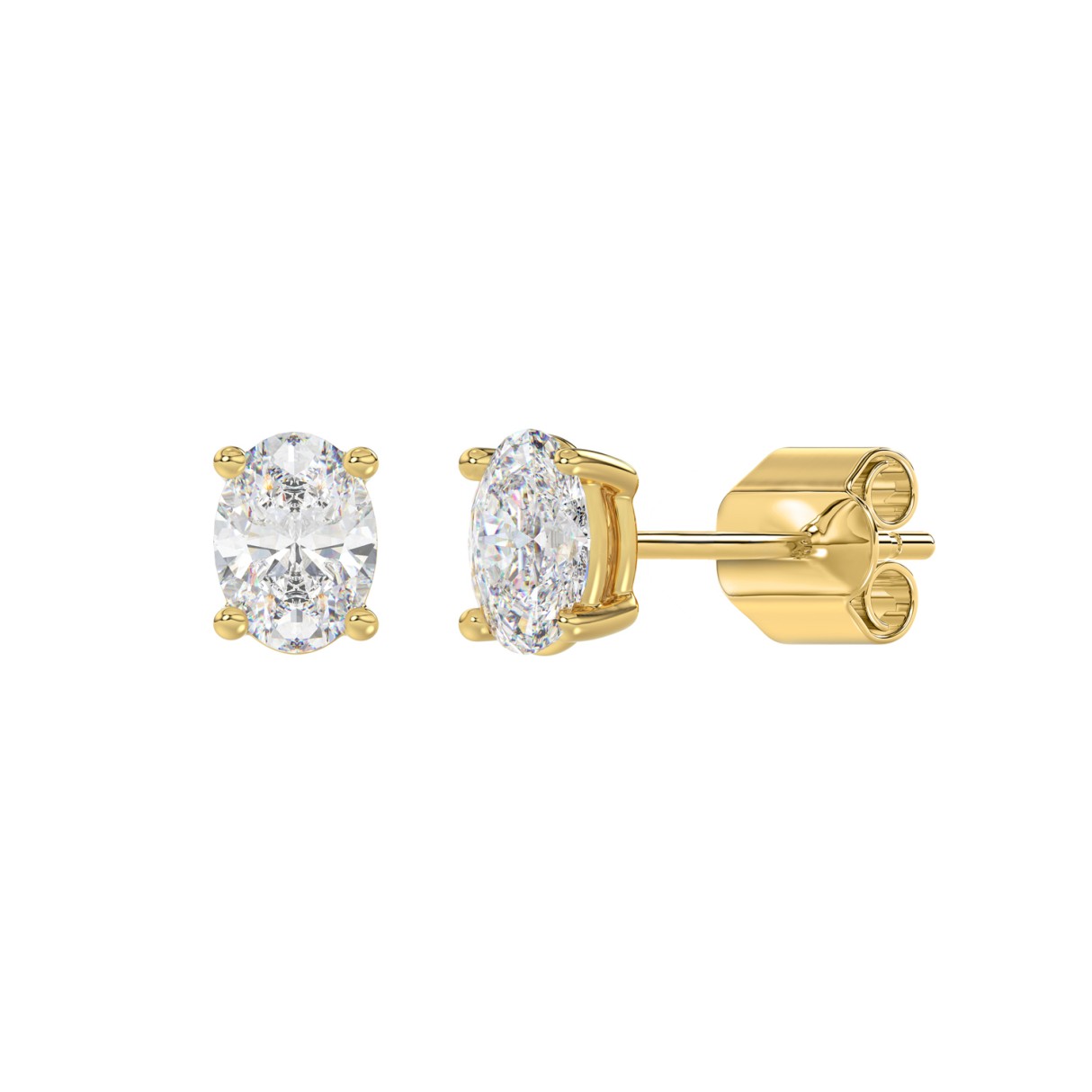 LADIES SOLITAIRE EARRINGS 1 1/2CT OVAL DIAMOND 14K YELLOW GOLD