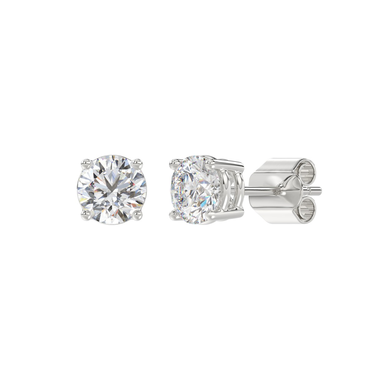 LADIES SOLITAIRE EARRINGS 1 1/3CT ROUND DIAMOND 14K WHITE GOLD