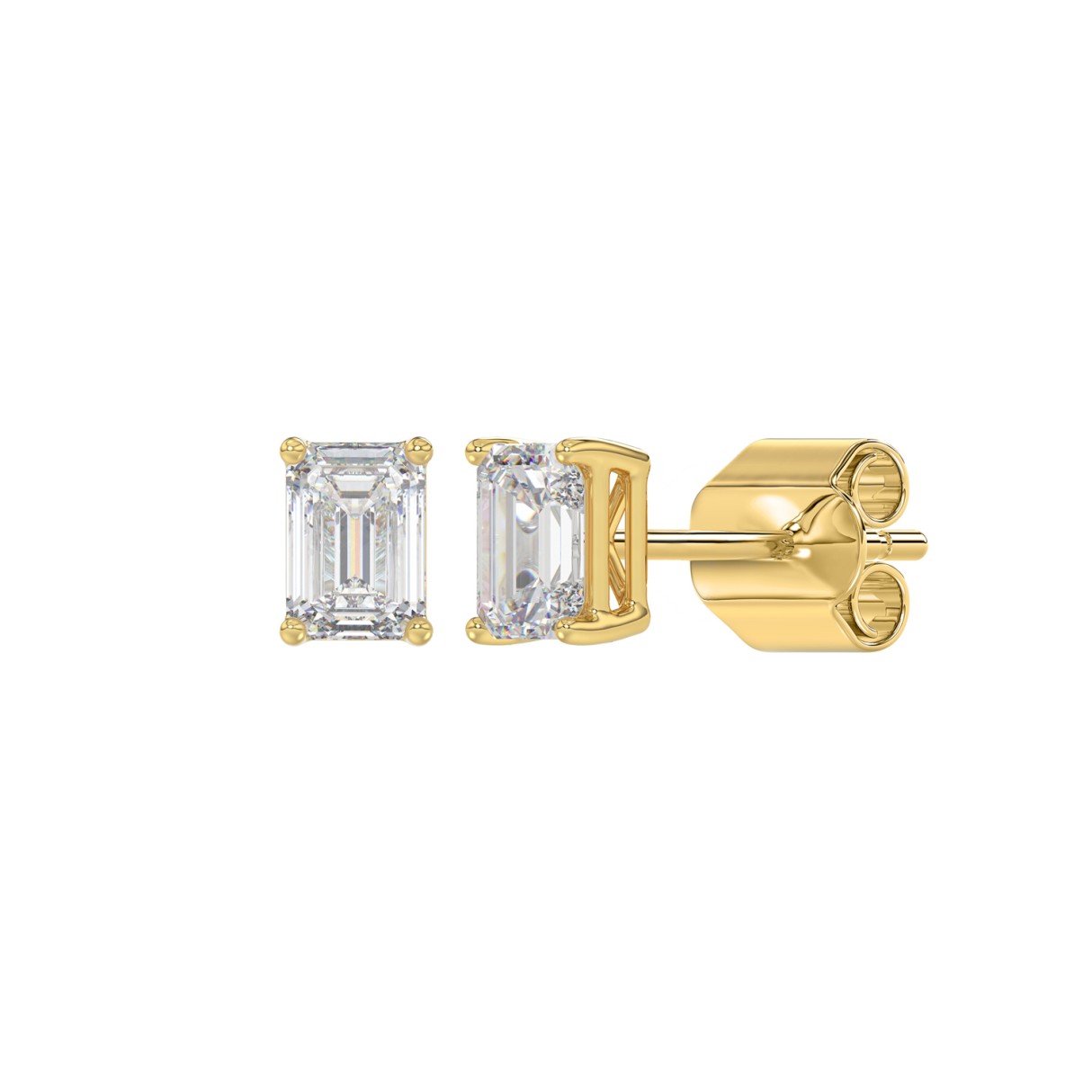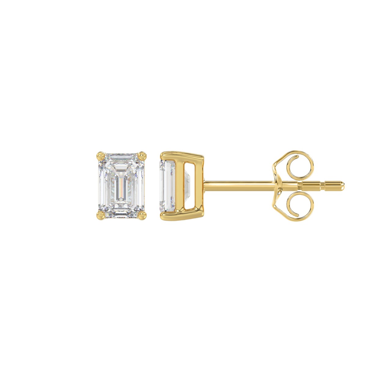 LADIES SOLITAIRE EARRINGS 1/2CT EMERALD DIAMOND 14K YELLOW GOLD