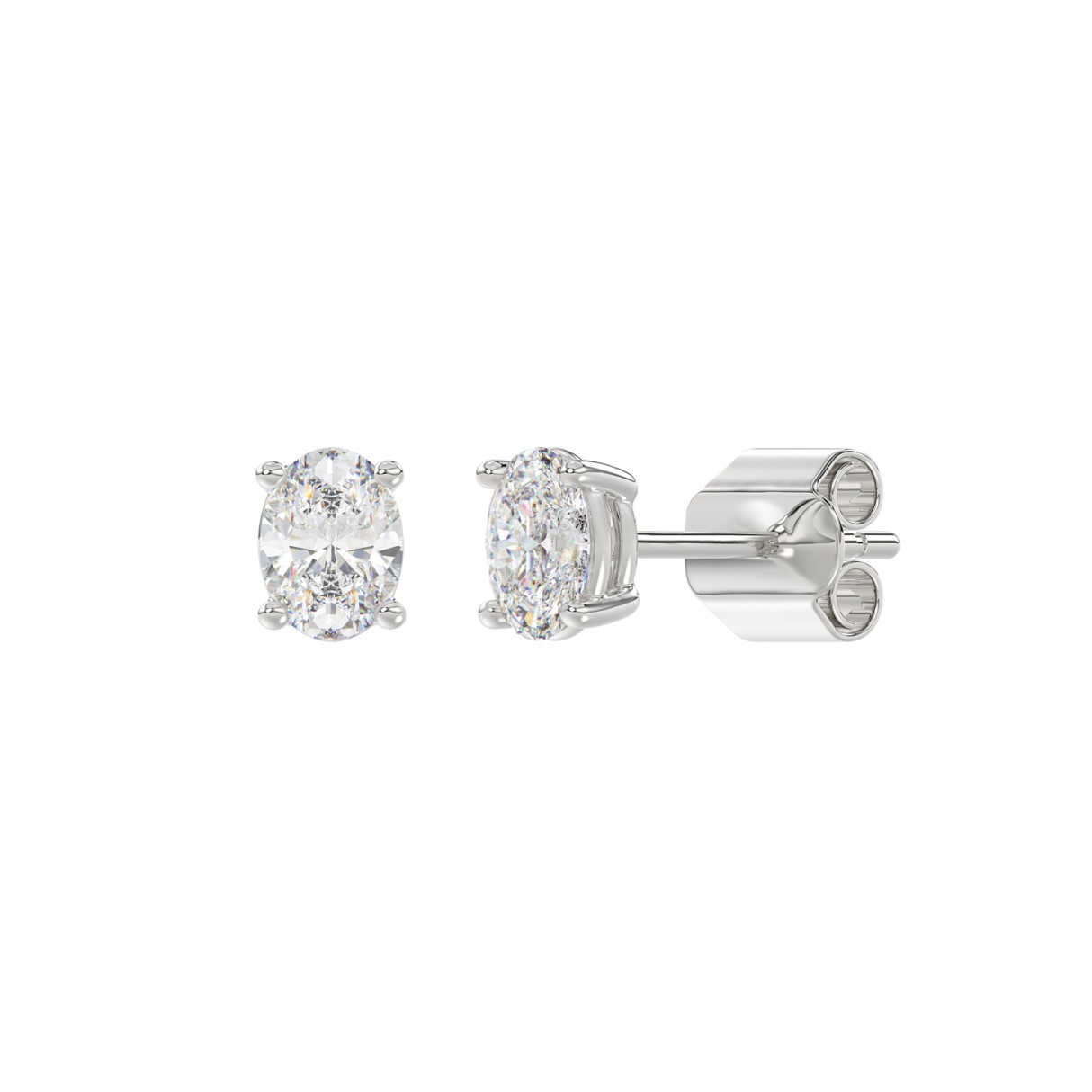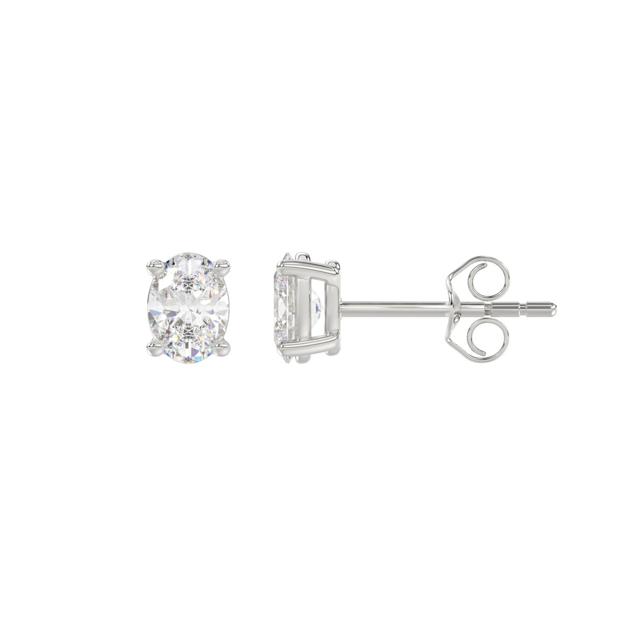 LADIES SOLITAIRE EARRINGS 1/2CT OVAL DIAMOND 14K WHITE GOLD (CENTER STONE OVAL DIAMOND 1/4CT )