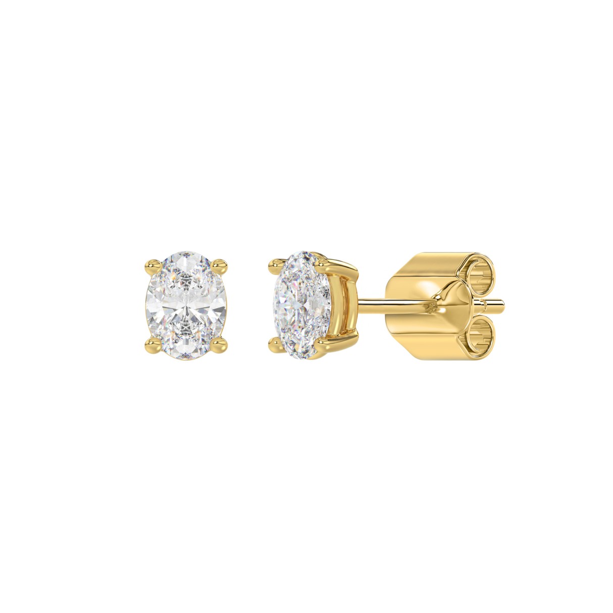LADIES SOLITAIRE EARRINGS 1/2CT OVAL DIAMOND 14K YELLOW GOLD (CENTER STONE OVAL DIAMOND 1/4CT )
