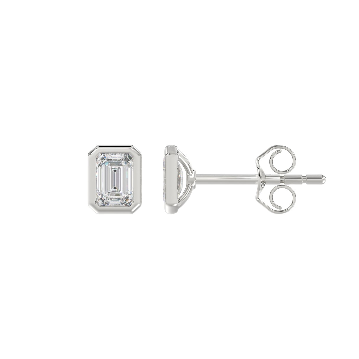 LADIES SOLITAIRE EARRINGS 1CT EMERALD DIAMOND 14K WHITE GOLD