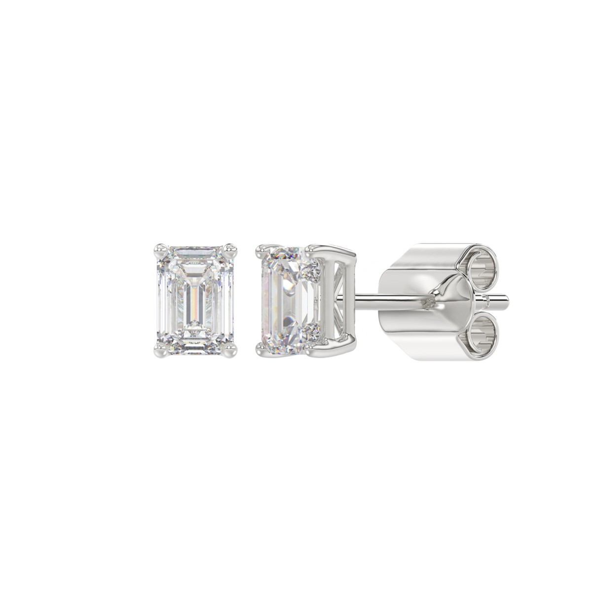LADIES SOLITAIRE EARRINGS 1CT EMERALD DIAMOND 14K WHITE GOLD