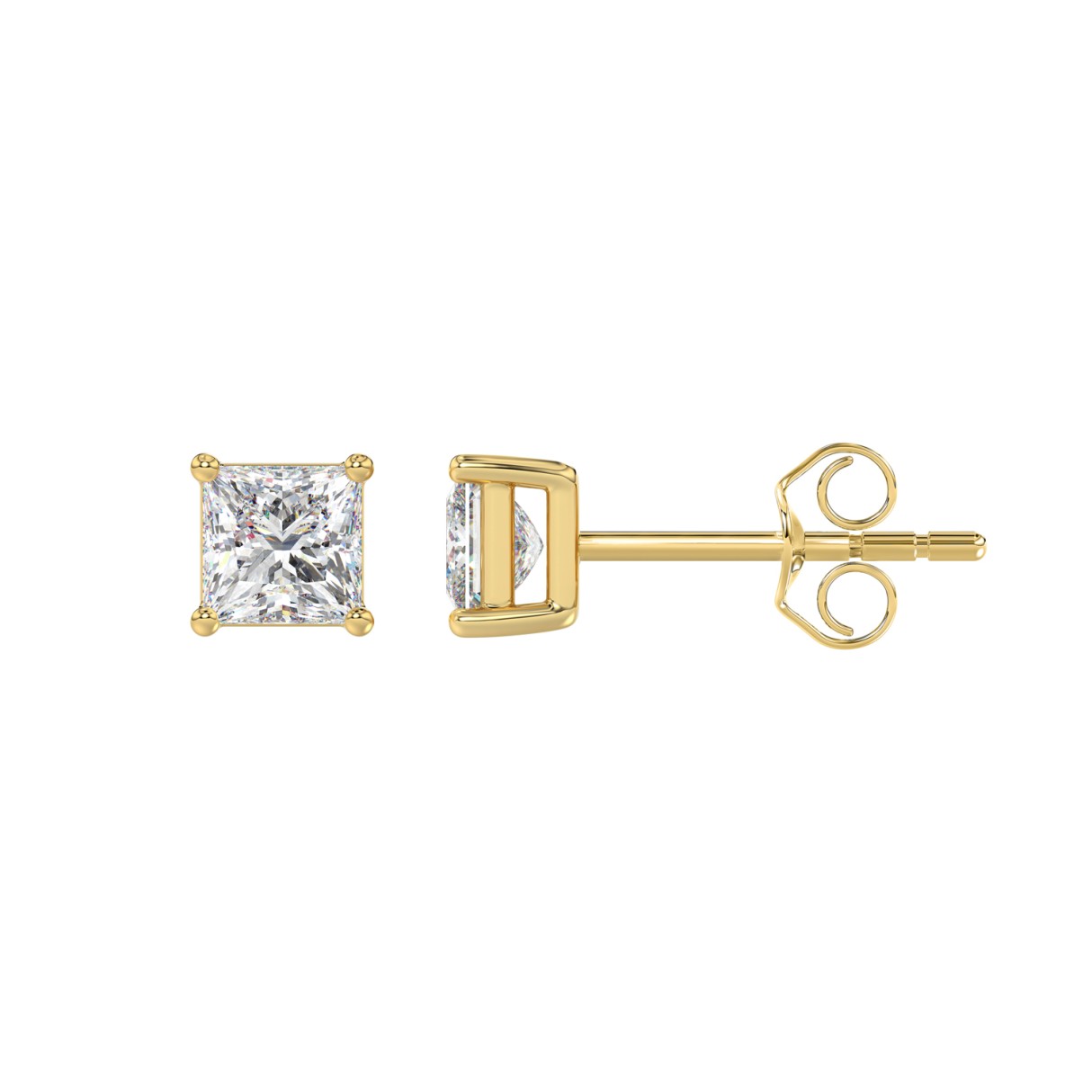 LADIES SOLITAIRE EARRINGS 1CT PRINCESS DIAMOND 14K YELLOW GOLD