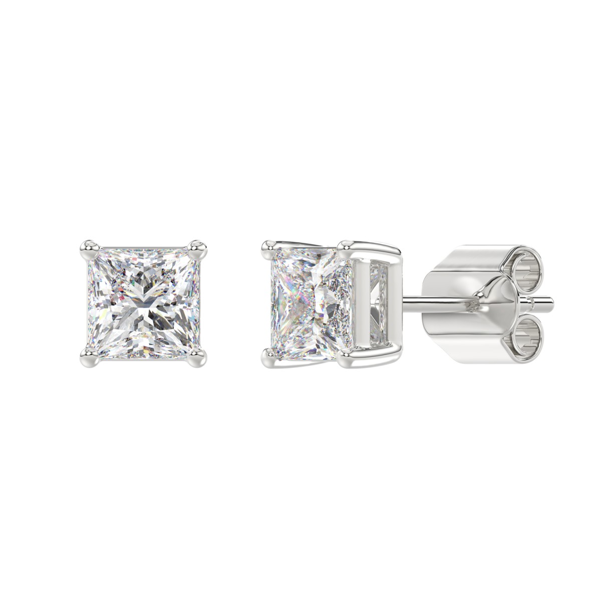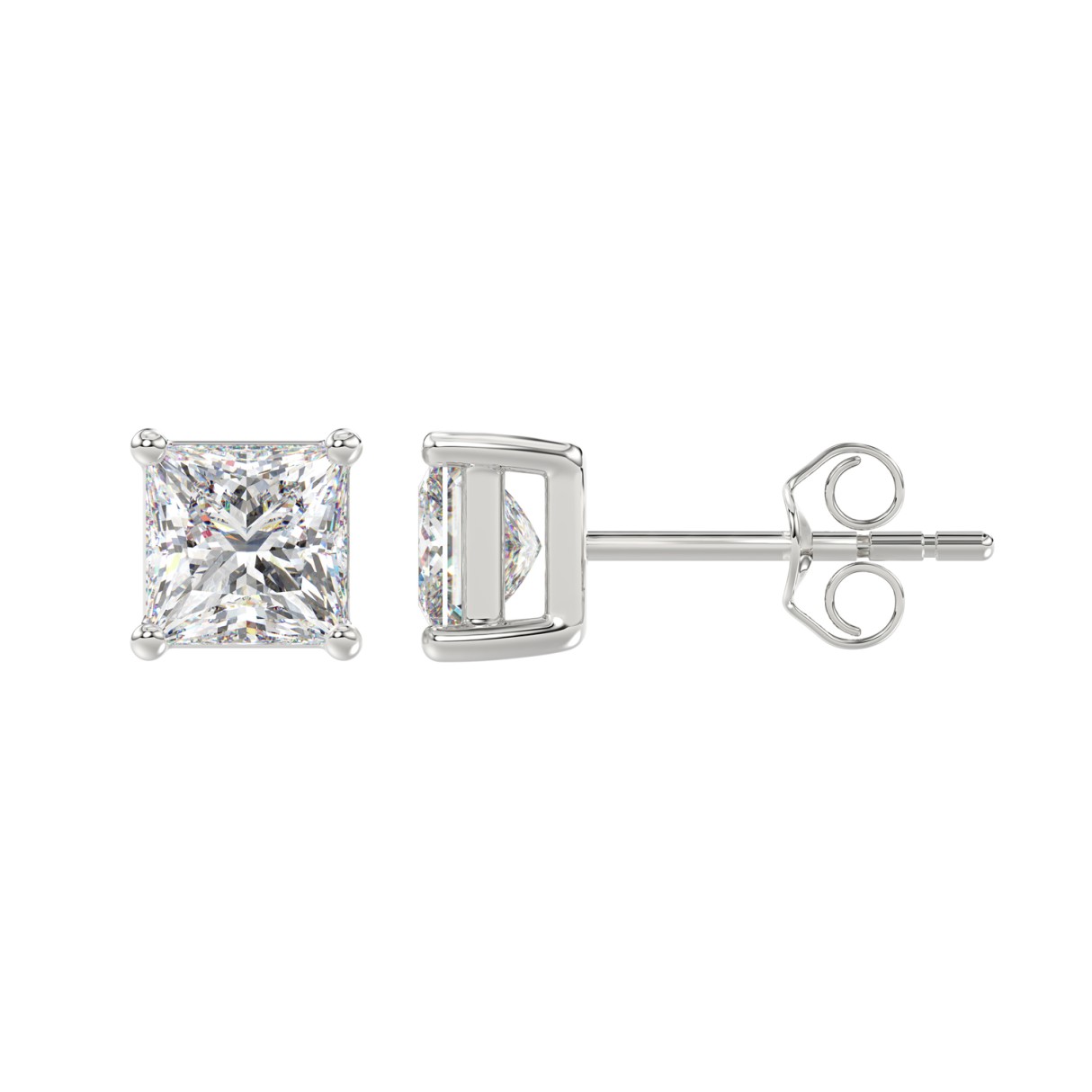 LADIES SOLITAIRE EARRINGS 2 1/2CT PRINCESS DIAMOND 14K WHITE GOLD