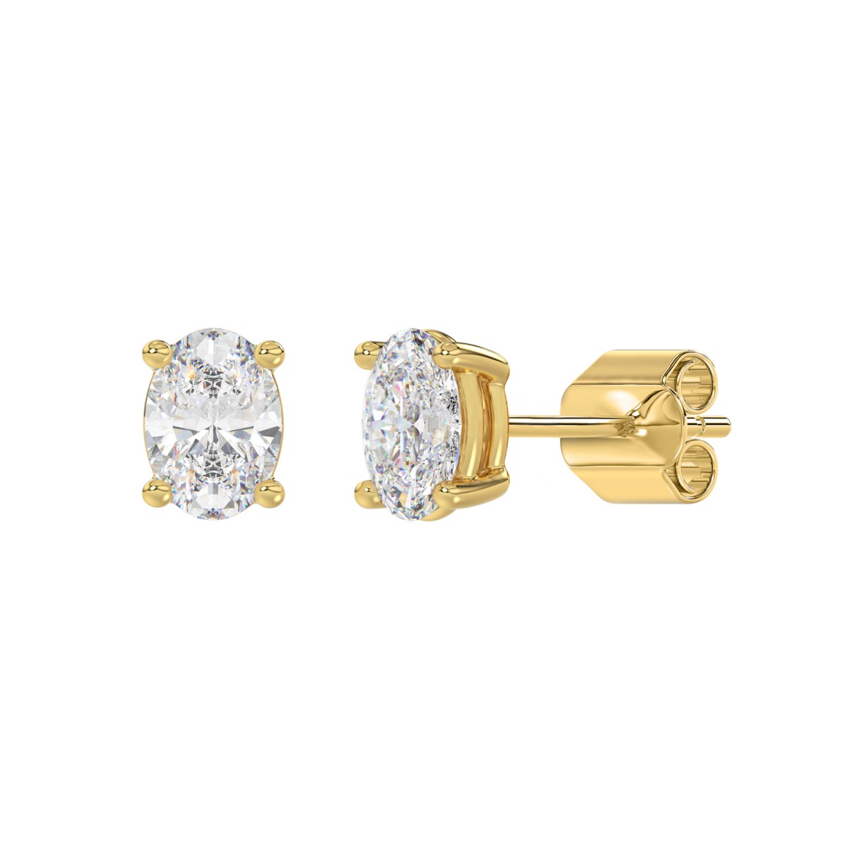 LADIES SOLITAIRE EARRINGS 2CT OVAL DIAMOND 14K YELLOW GOLD