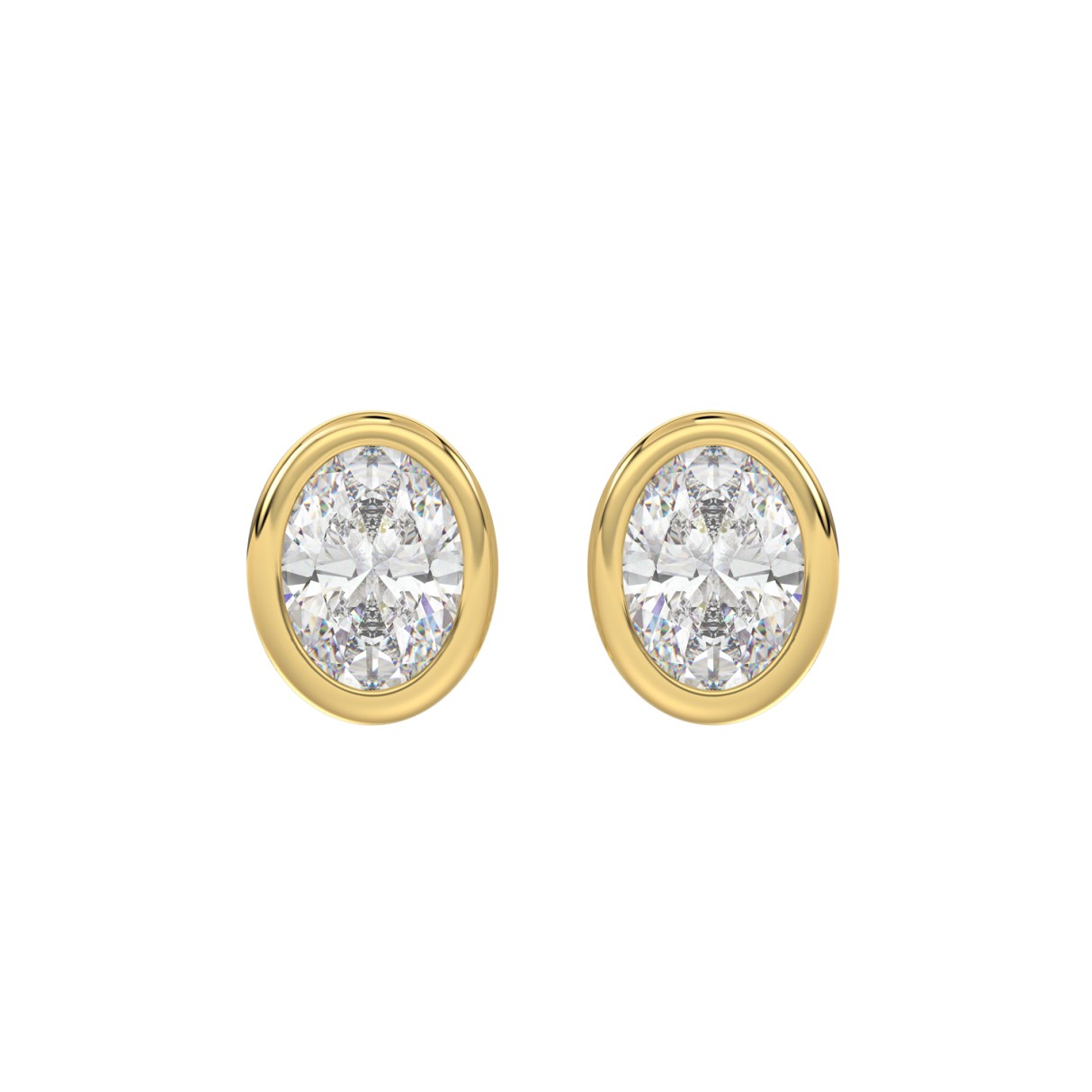 LADIES SOLITAIRE EARRINGS 3CT OVAL DIAMOND 14K YELLOW GOLD (CENTER STONE OVAL DIAMOND 1 1/2CT )