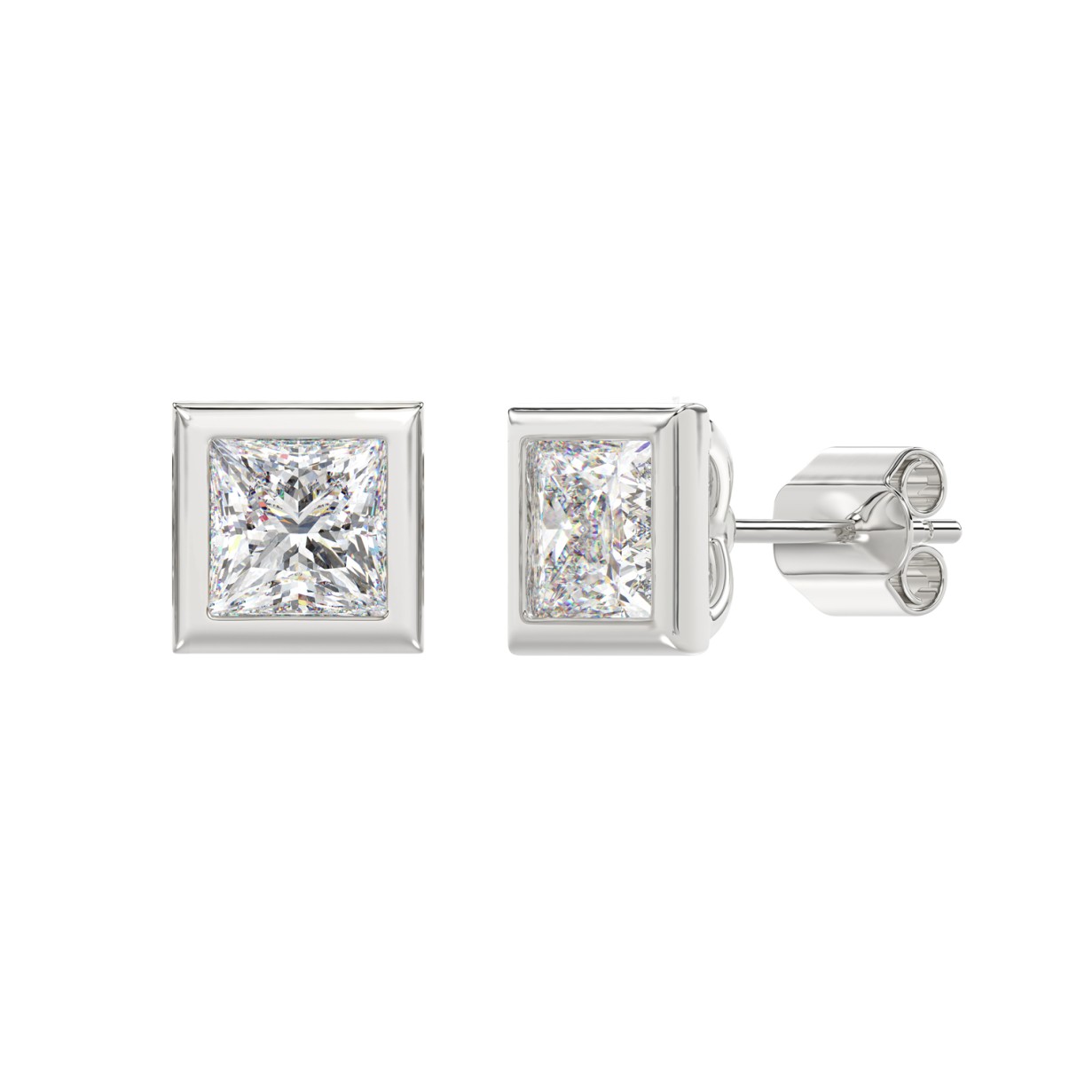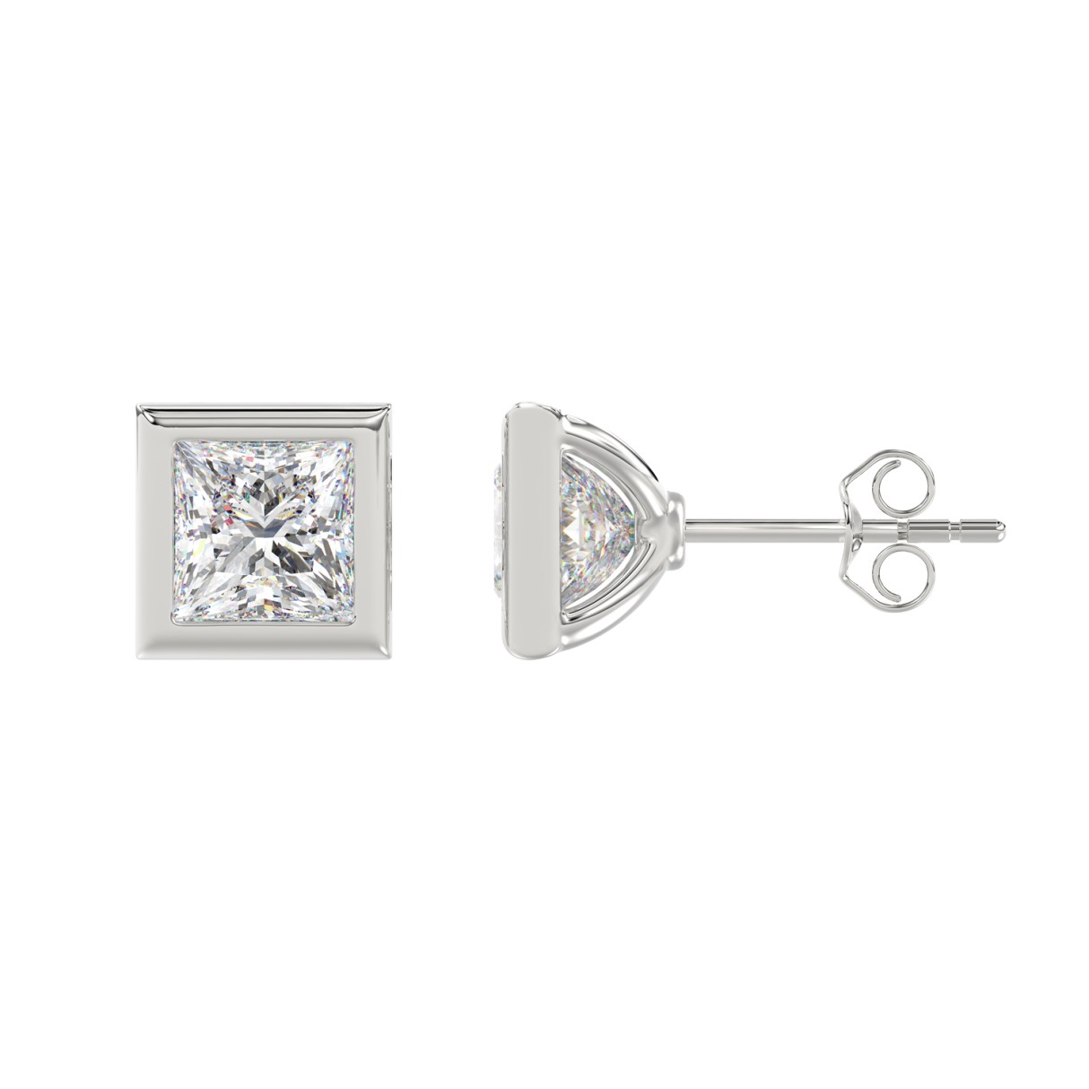 LADIES SOLITAIRE EARRINGS 3CT PRINCESS DIAMOND 14K WHITE GOLD