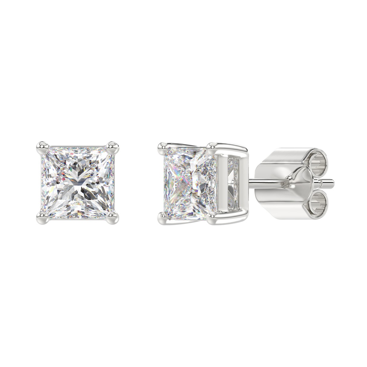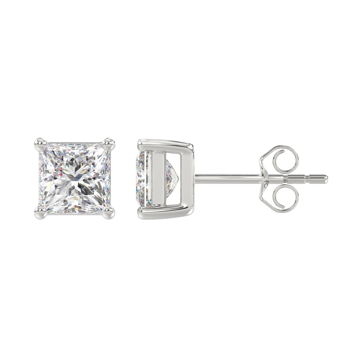 LADIES SOLITAIRE EARRINGS 3CT PRINCESS DIAMOND 14K WHITE GOLD