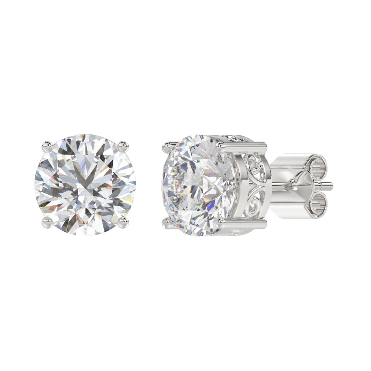 LADIES SOLITAIRE EARRINGS 6CT ROUND DIAMOND 14K WHITE GOLD