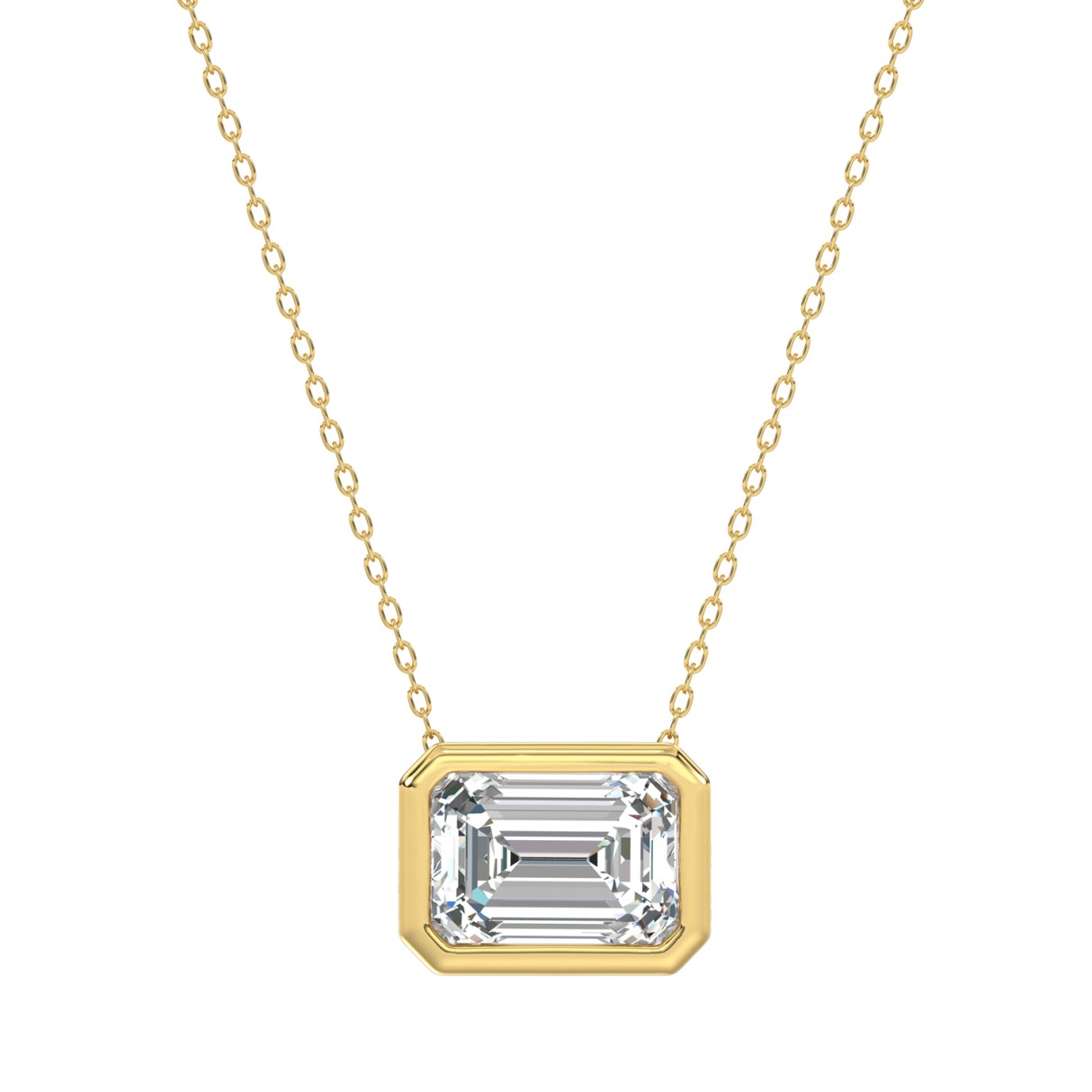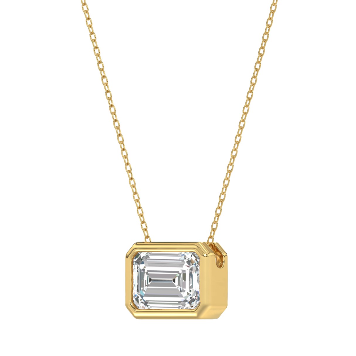 LADIES SOLITAIRE PENDANT 1CT EMERALD DIAMOND 14K YELLOW GOLD WITH CHAIN