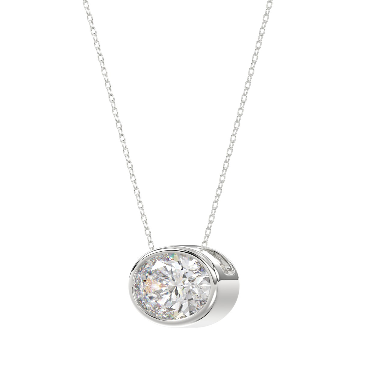 LADIES SOLITAIRE PENDANT 1CT OVAL DIAMOND 14K WHITE GOLD