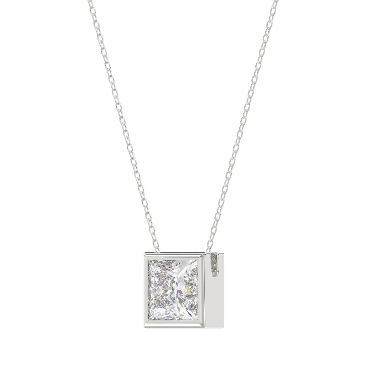 LADIES SOLITAIRE PENDANT 1CT PRINCESS DIAMOND 14K WHITE GOLD WITH CHAIN