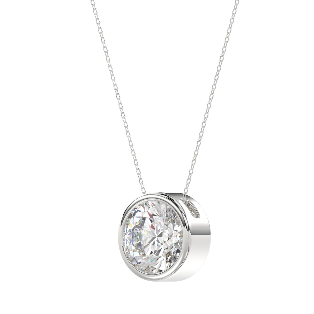 14K WHITE GOLD 3CT ROUND DIAMOND LADIES SOLITAIRE PENDANTS WITH CHAIN