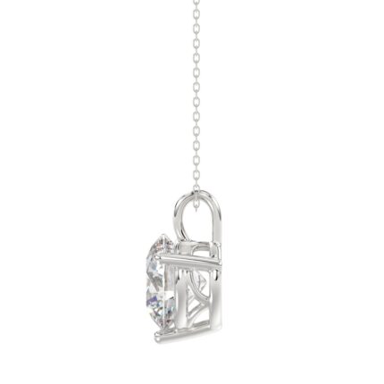 LADIES SOLITAIRE PENDANT WITH UNDER-PASS CHAIN 2 1/2CT ROUND DIAMOND 14K WHITE GOLD
