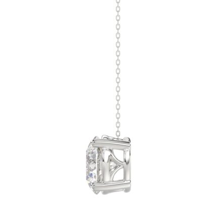 LADIES SOLITAIRE PENDANT WITH UNDER-PASS CHAIN 1 1/2CT ROUND DIAMOND 14K WHITE GOLD