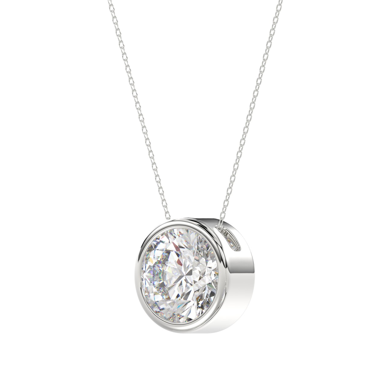 LADIES SOLITAIRE PENDANT WITH UNDER-PASS CHAIN 3CT ROUND DIAMOND 14K WHITE GOLD