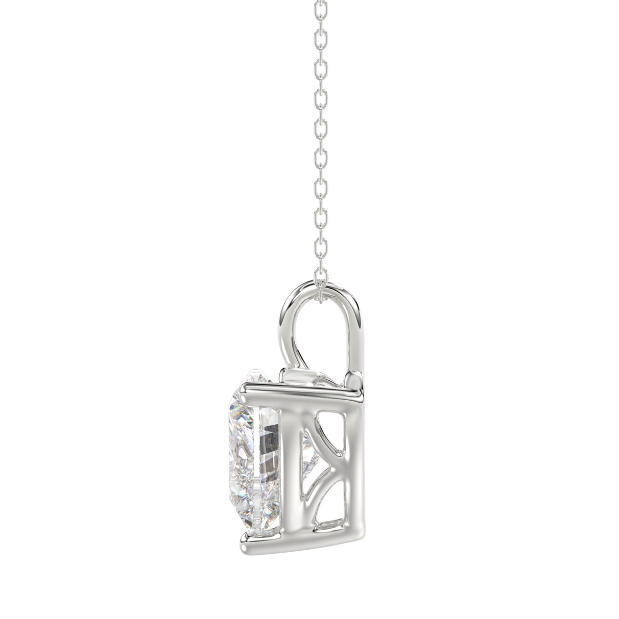 LADIES SOLITAIRE PENDANT WITH CHAIN 2 1/2CT PRINCESS DIAMOND 14K WHITE GOLD