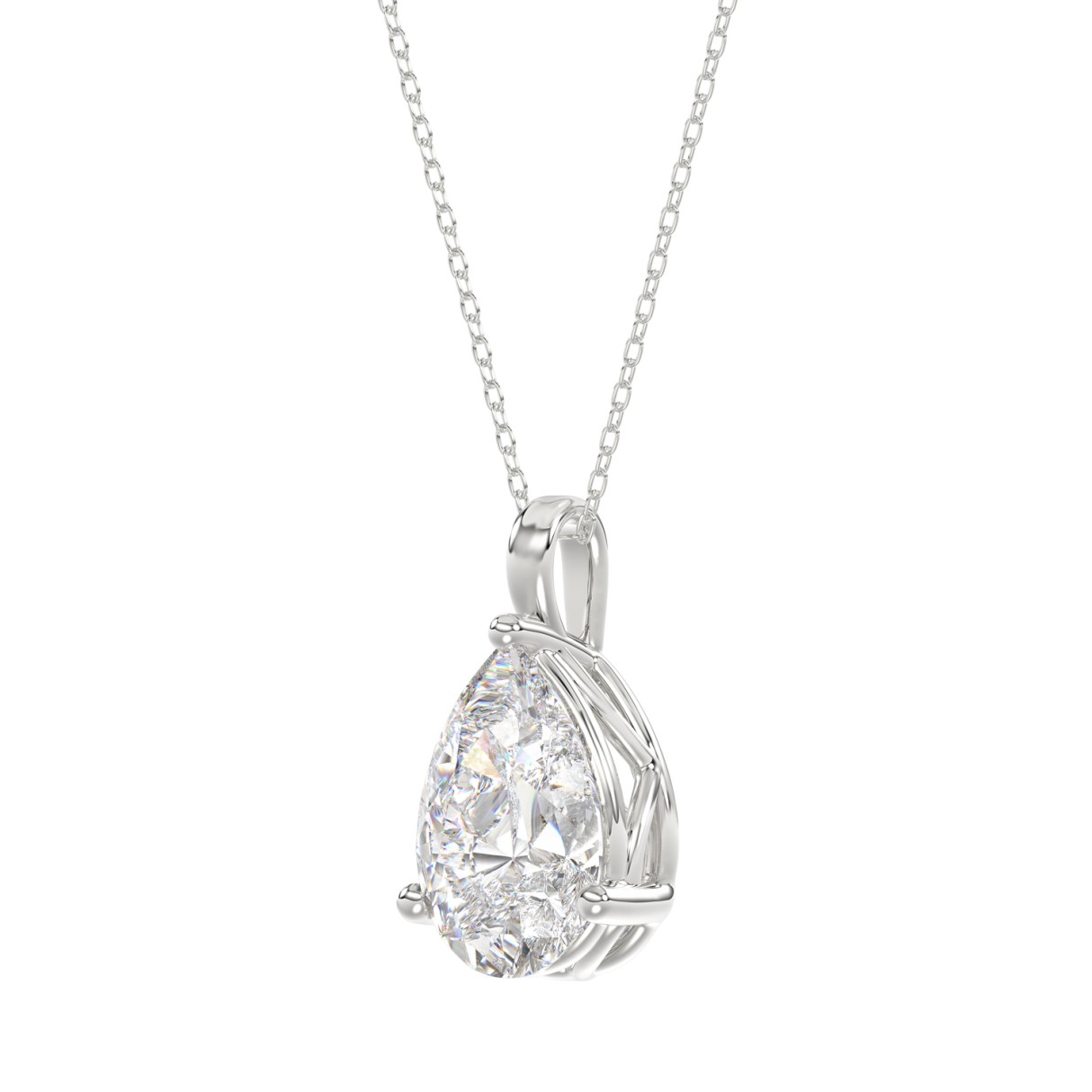 LADIES SOLITAIRE PENDANT 4CT PEAR DIAMOND 14K WHITE GOLD