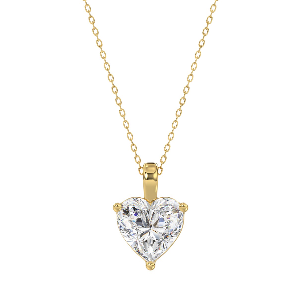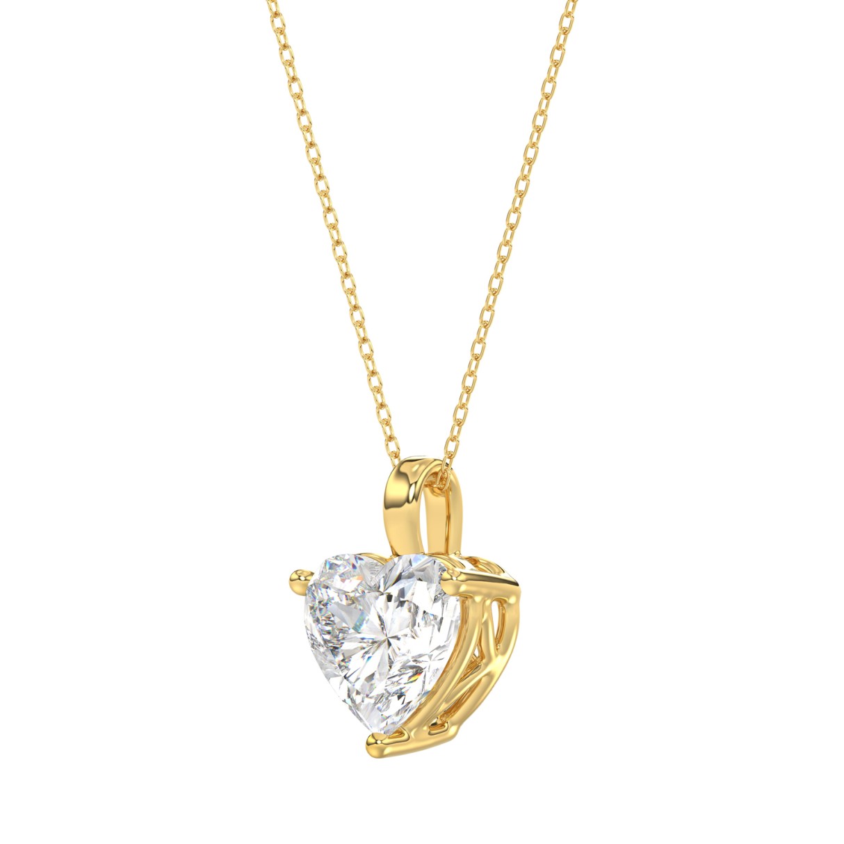 LADIES SOLITAIRE PENDANT WITH CHAIN 1 1/2CT HEART DIAMOND 14K YELLOW GOLD