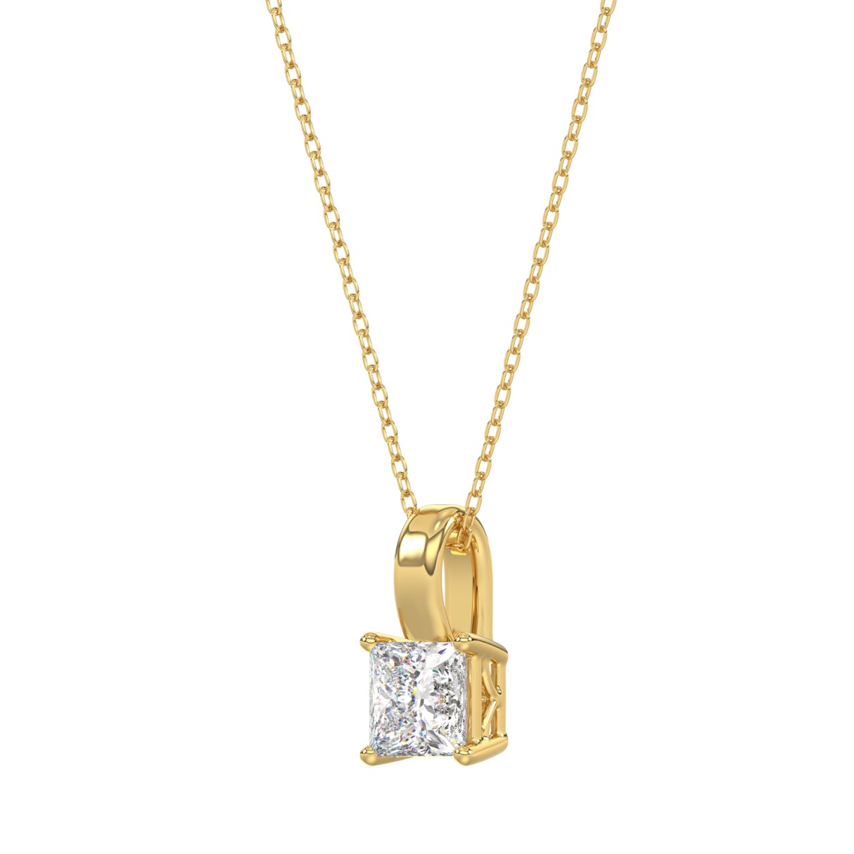 LADIES SOLITAIRE PENDANT WITH CHAIN 1CT PRINCESS DIAMOND 14K YELLOW GOLD