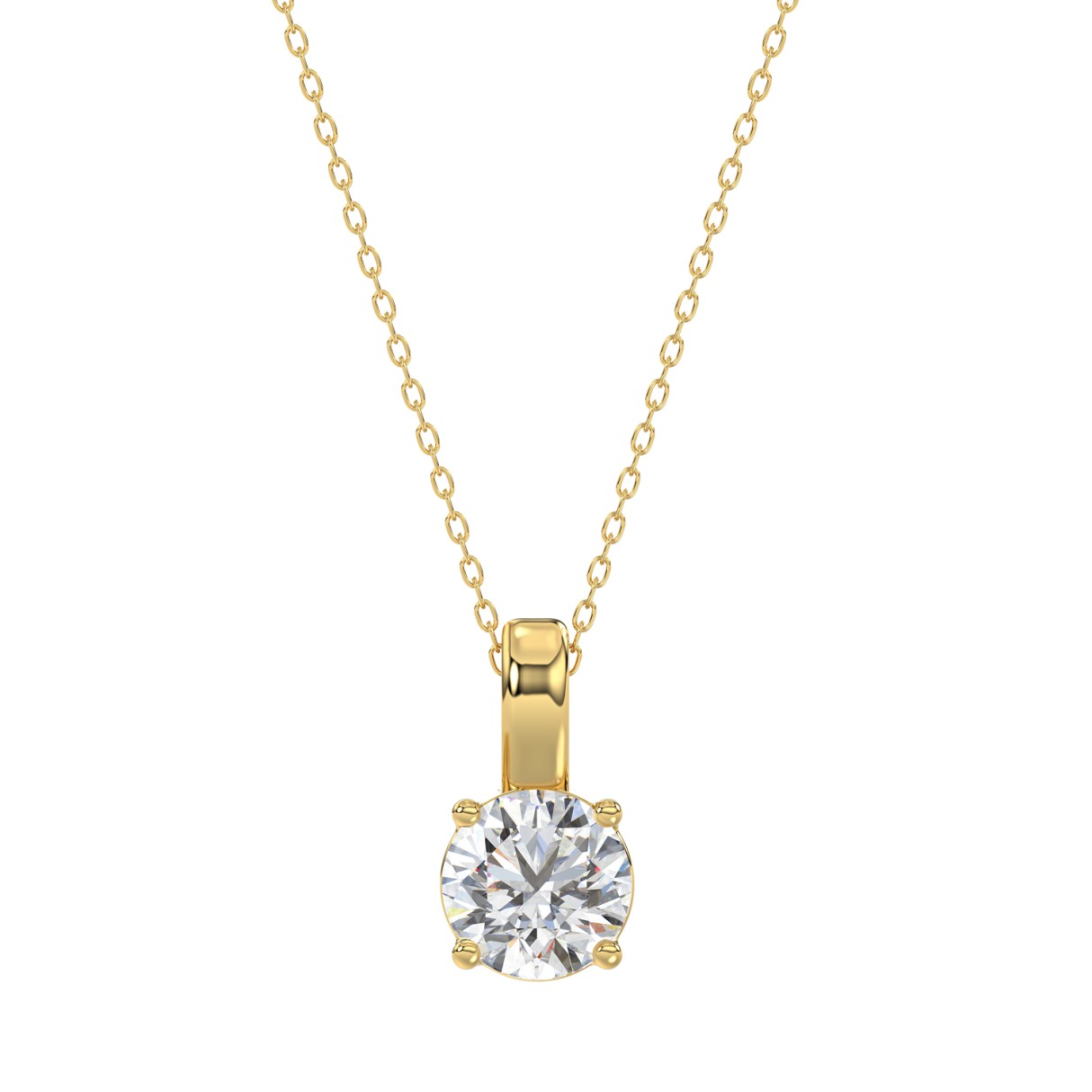 LADIES SOLITAIRE PENDANT WITH UNDER-PASS CHAIN 4CT ROUND DIAMOND 14K YELLOW GOLD