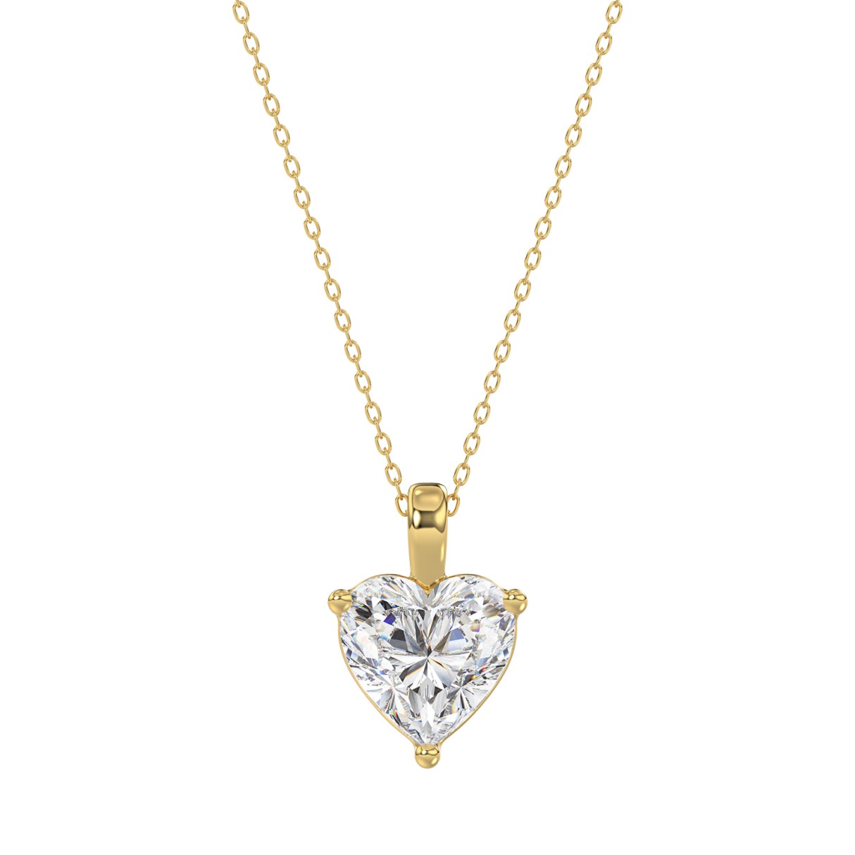 LADIES SOLITAIRE PENDANT WITH CHAIN 1CT HEART DIAMOND 14K YELLOW GOLD
