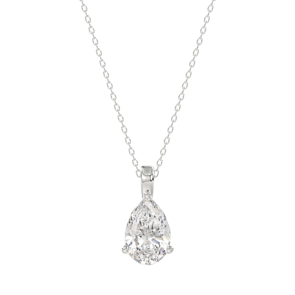 LADIES SOLITAIRE PENDANT WITH CHAIN 1CT PEAR DIAMOND 14K WHITE GOLD