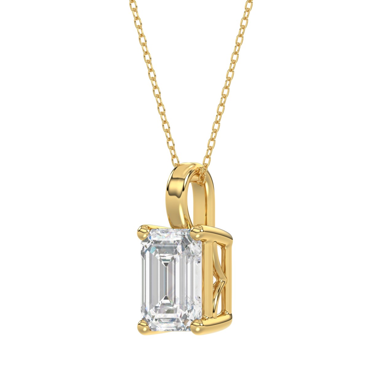 LADIES SOLITAIRE PENDANT WITH CHAIN 4CT EMERALD DIAMOND 14K YELLOW GOLD