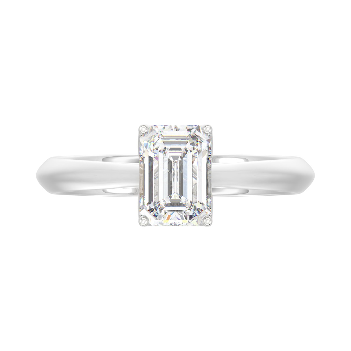 LADIES SOLITAIRE RING 1 1/2CT EMERALD DIAMOND 14K WHITE GOLD
