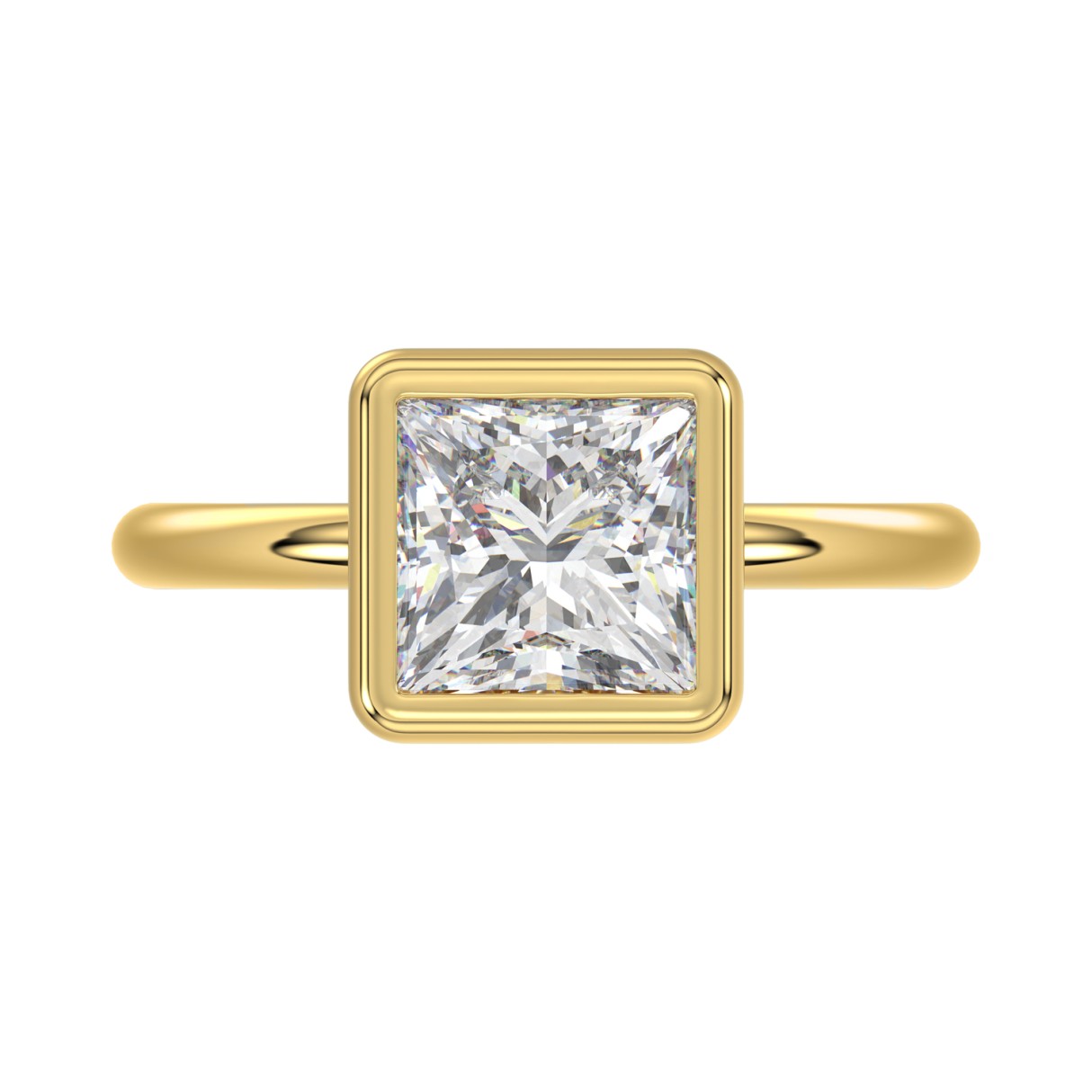 LADIES SOLITAIRE RING 3CT PRINCESS DIAMOND 14K YELLOW GOLD
