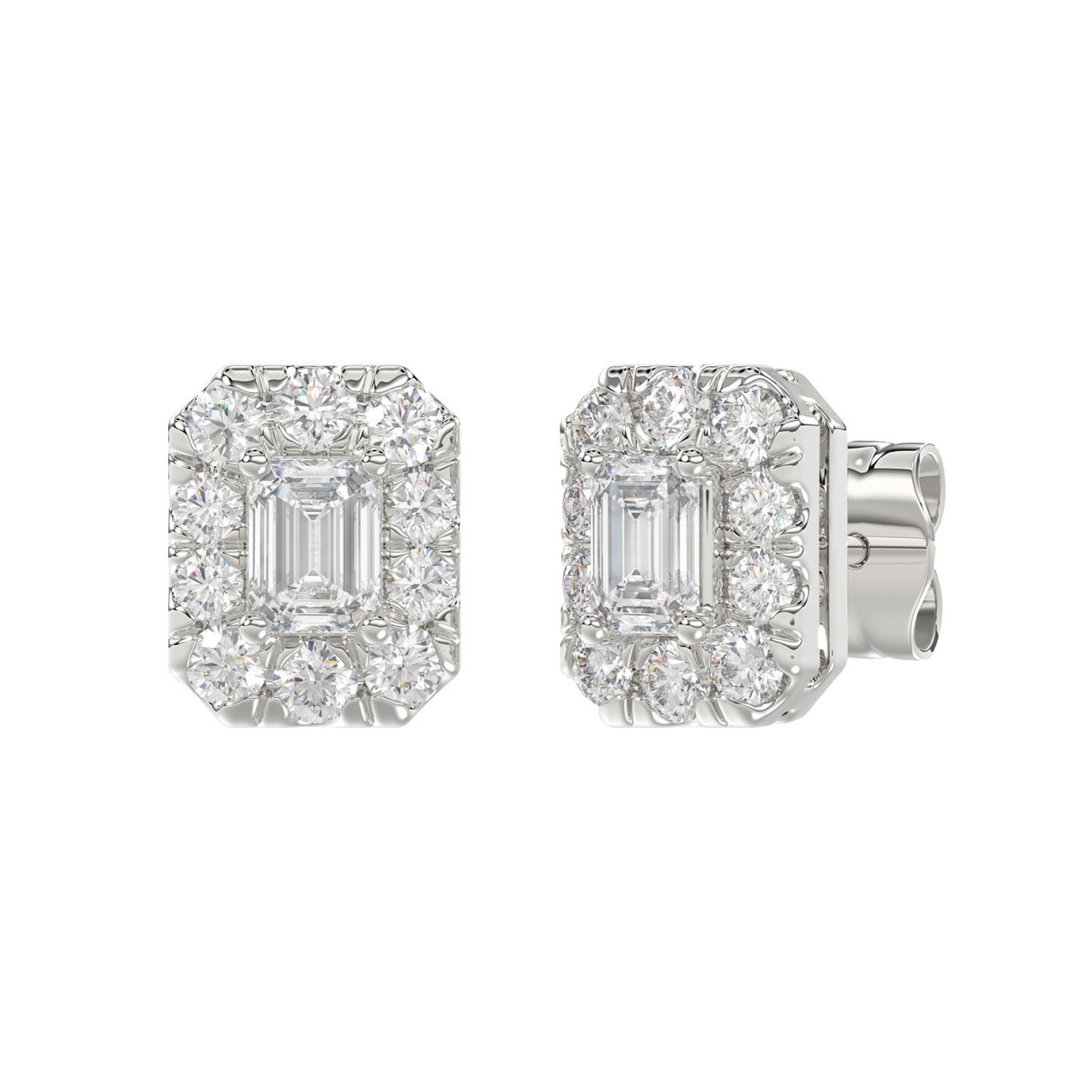 LADIES STUD EARRINGS 1CT EMERALD/ROUND DIAMOND 14K WHITE GOLD