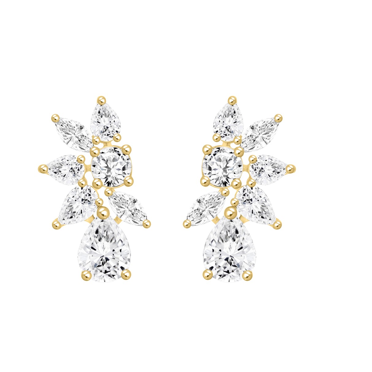 LADIES STUD EARRINGS 4 1/2CT PEAR/ROUND/MARQUISE DIAMOND 14K YELLOW GOLD