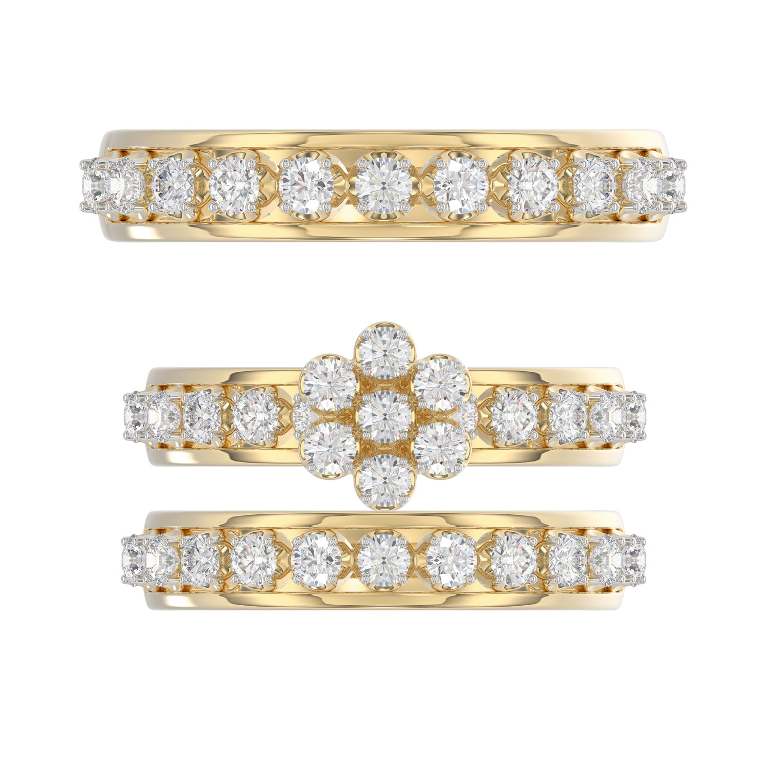 LADIES TRIO RING 1.30CT ROUND DIAMOND 10K YELLOW GOLD