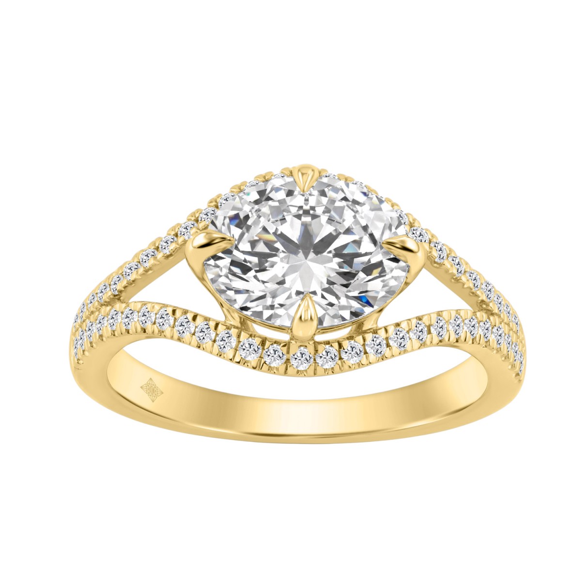 Luxury 14K Yellow Gold 1 3/4Ct Lab Grown Diamond Ring 1 1/2Ct Oval Center And Round Diamond Ladies Engagement Ring (Color F-G -Clarity Vs1/Vs2)