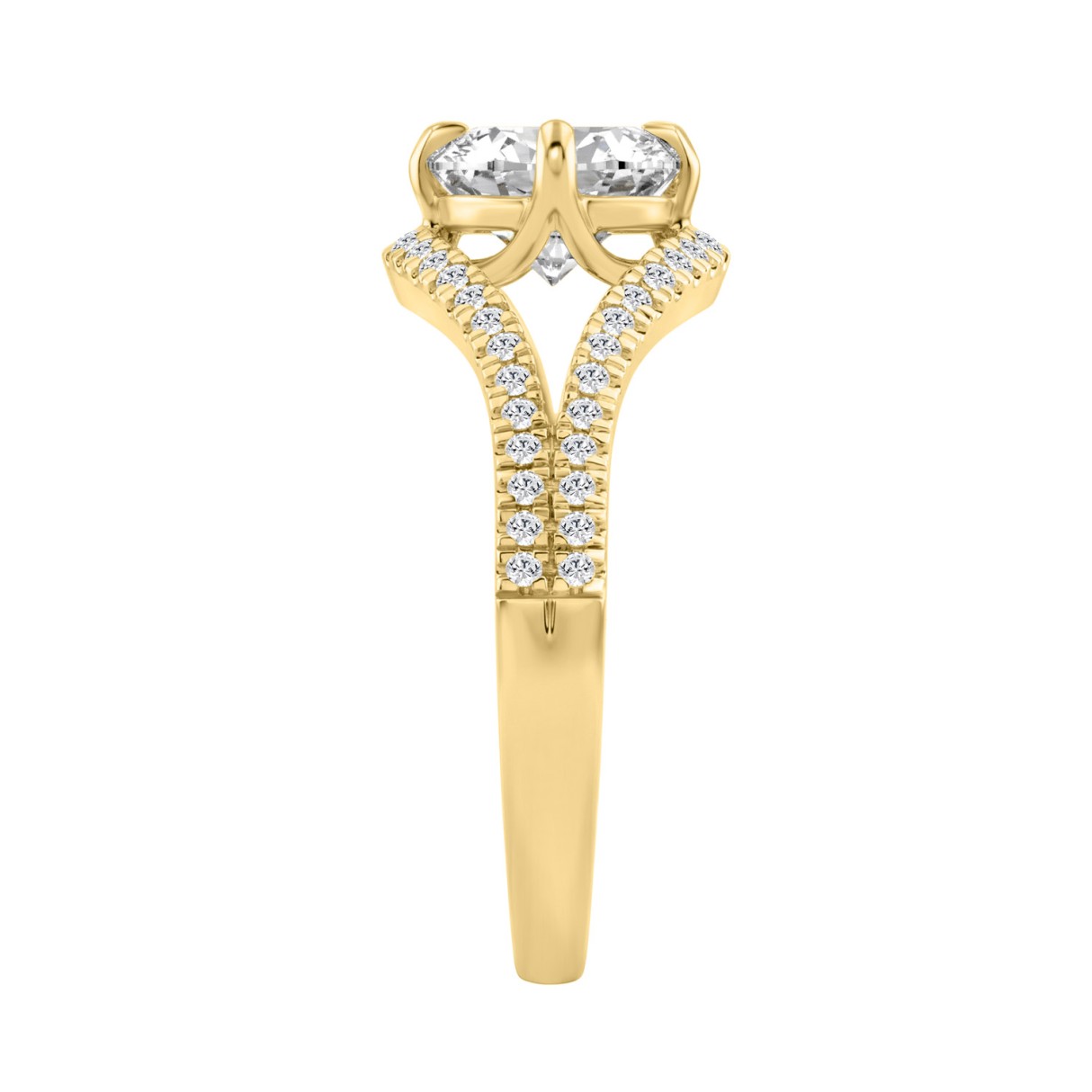 14K Yellow Gold 5 1/2Ct Round Diamond Engagement Ring Women Bridal Wedding Ring 4Ct Round Center Stone (Color F-G -Clarity Vs1/Vs2)