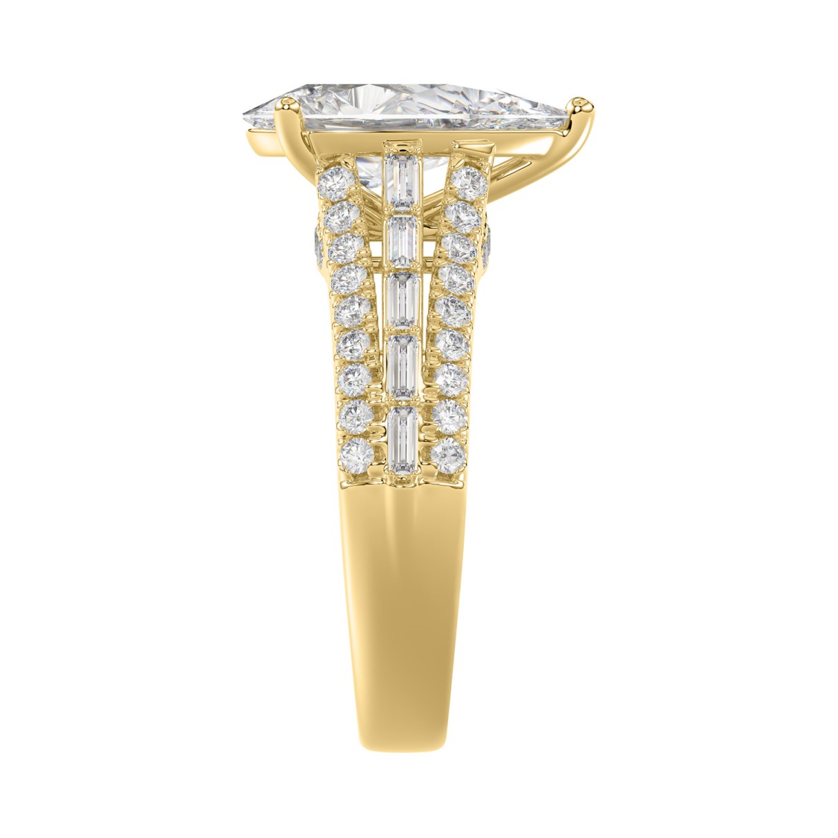Luxury 14K Yellow Gold Ladies Diamond Ring 2 3/4CT Round Pear & Baguette Diamonds with 2.00CT Pear Center stone (Color F-G -Clarity VS1/VS2)