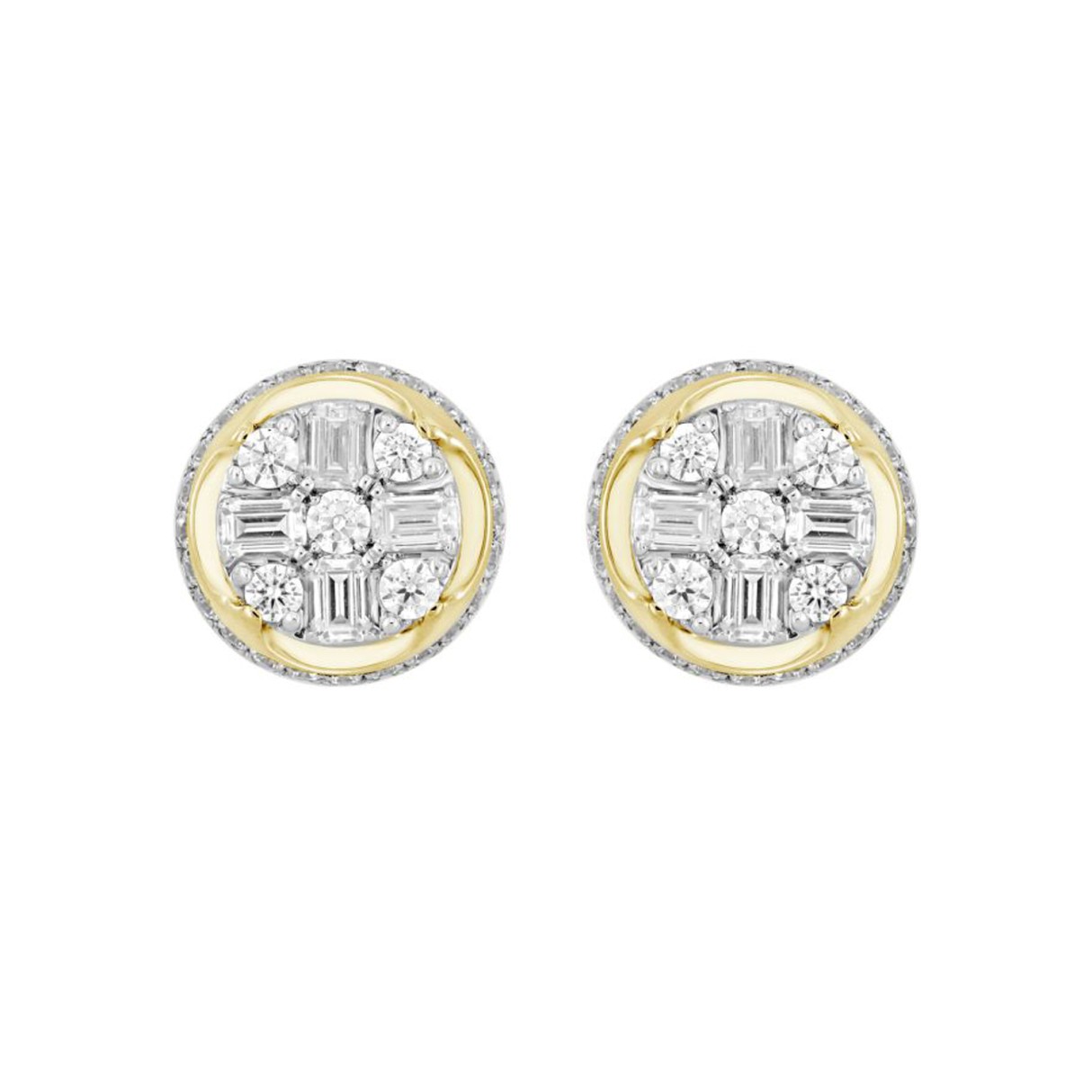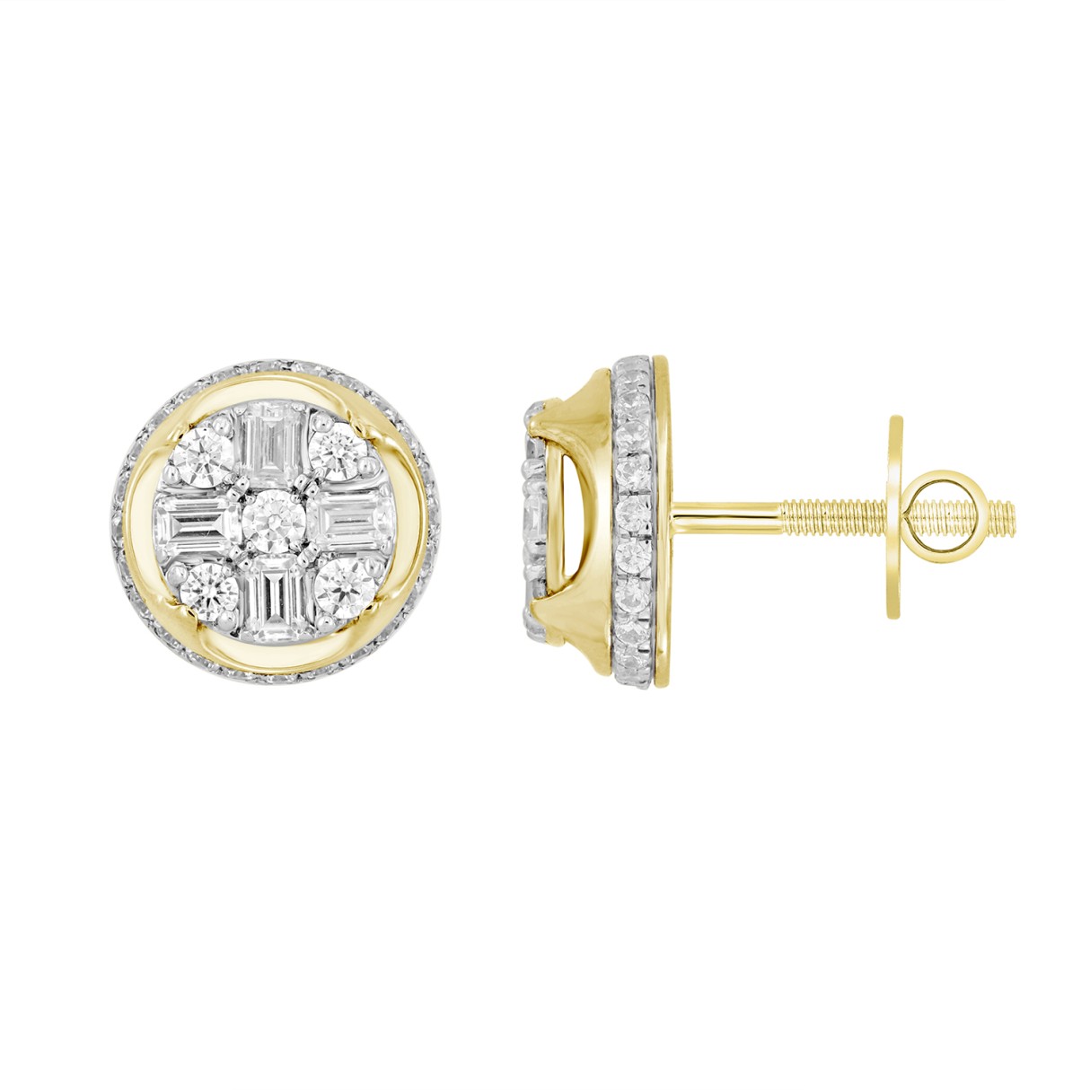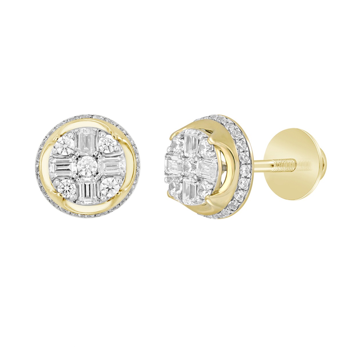 MEN’S EARRINGS 1 1/2CT ROUND/EMERALD DIAMOND 14K YELLOW GOLD