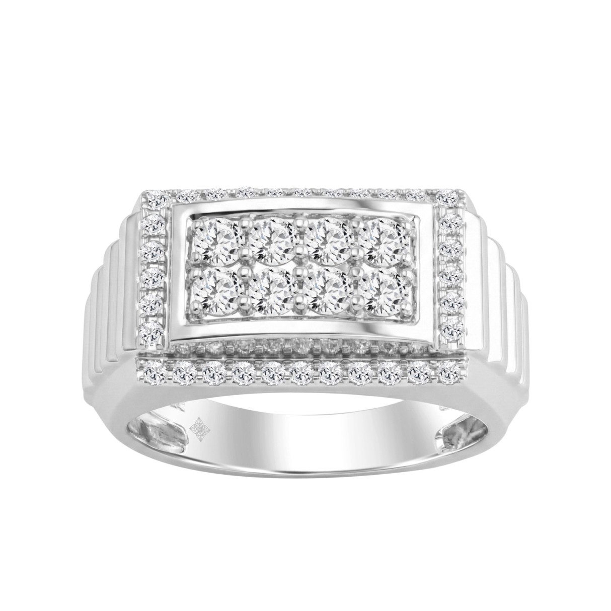 Men’s Fashion Ring 1.00CT in 14k White Gold featuring a square cluster of round-cut diamonds (Color F-G -Clarity VS1/VS2)