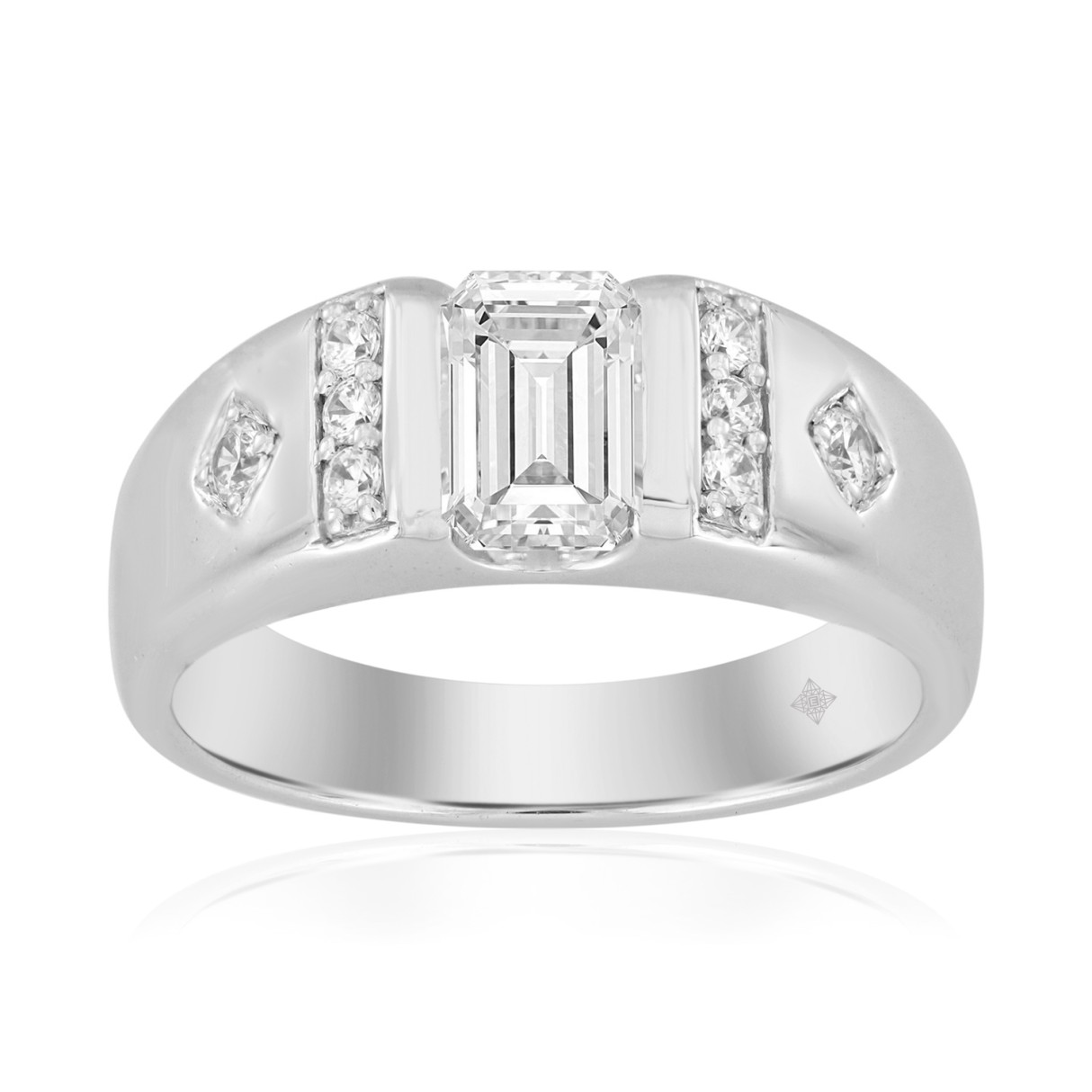 MEN’S RING 1 3/4CT EMERALD/ROUND DIAMOND 14K WHITE GOLD (CENTER STONE EMERALD DIAMOND 1 1/2CT )