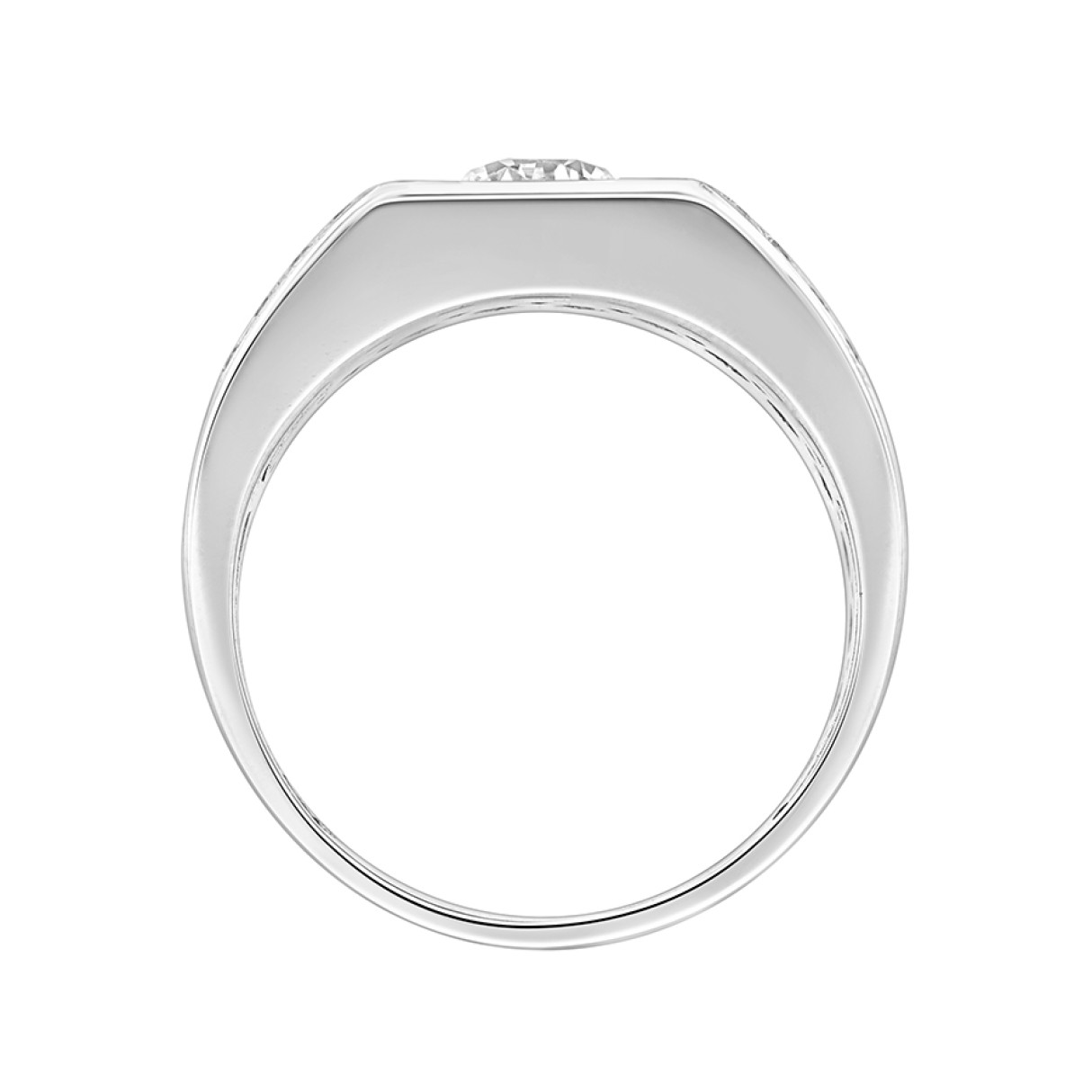 MEN'S RING 1CT ROUND DIAMOND 14K WHITE GOLD